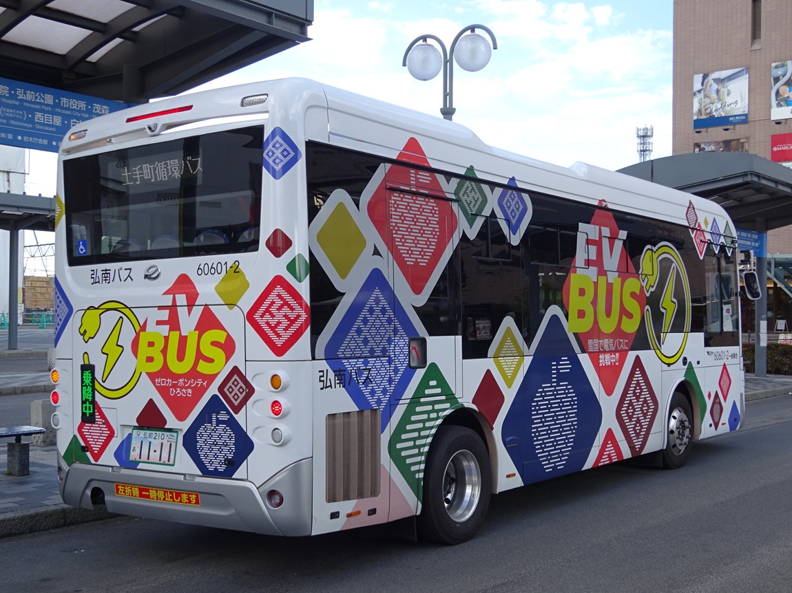 EVモーターズ・ジャパンは福岡県北九州市の自動車メーカー。中国メーカーに製造を委託した上で、日本国内向けに電気バスの開発・販売を行う形式をとっていましたが、後に国内に工場を製造し、国産の車両として製造する形に移行した…筈でした(後述)。このうち、一般的な路線バスとして登場したのが「F8 series2-City Bus」で、車体長は8,8mと10,5mの2通りがあります。弘南バスはこのうち8.8mを採用した全国2番目の事業者(1番目は鹿児島市営バス)になりました。大型バスを入れるほどの需要は無く、既存のEVバスに丁度いいサイズも無く、国産でもあり…と言う事での採用だったのかと思います。