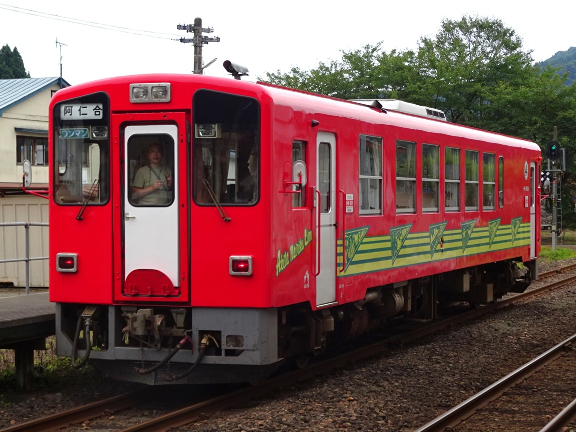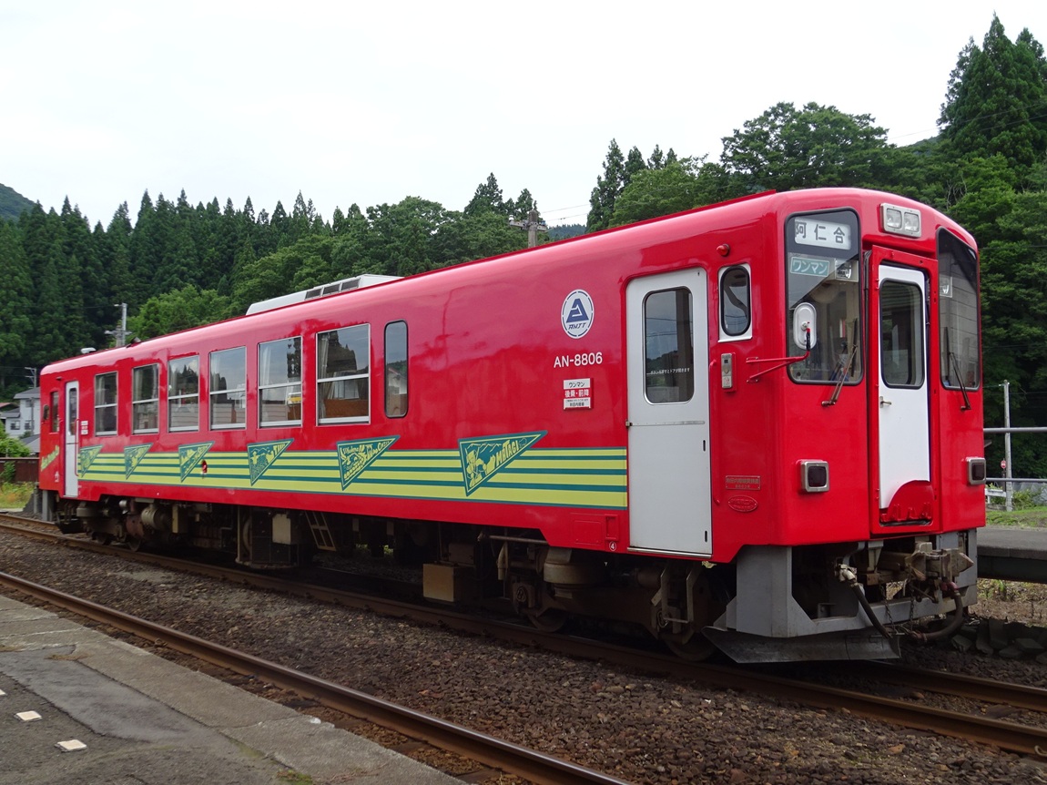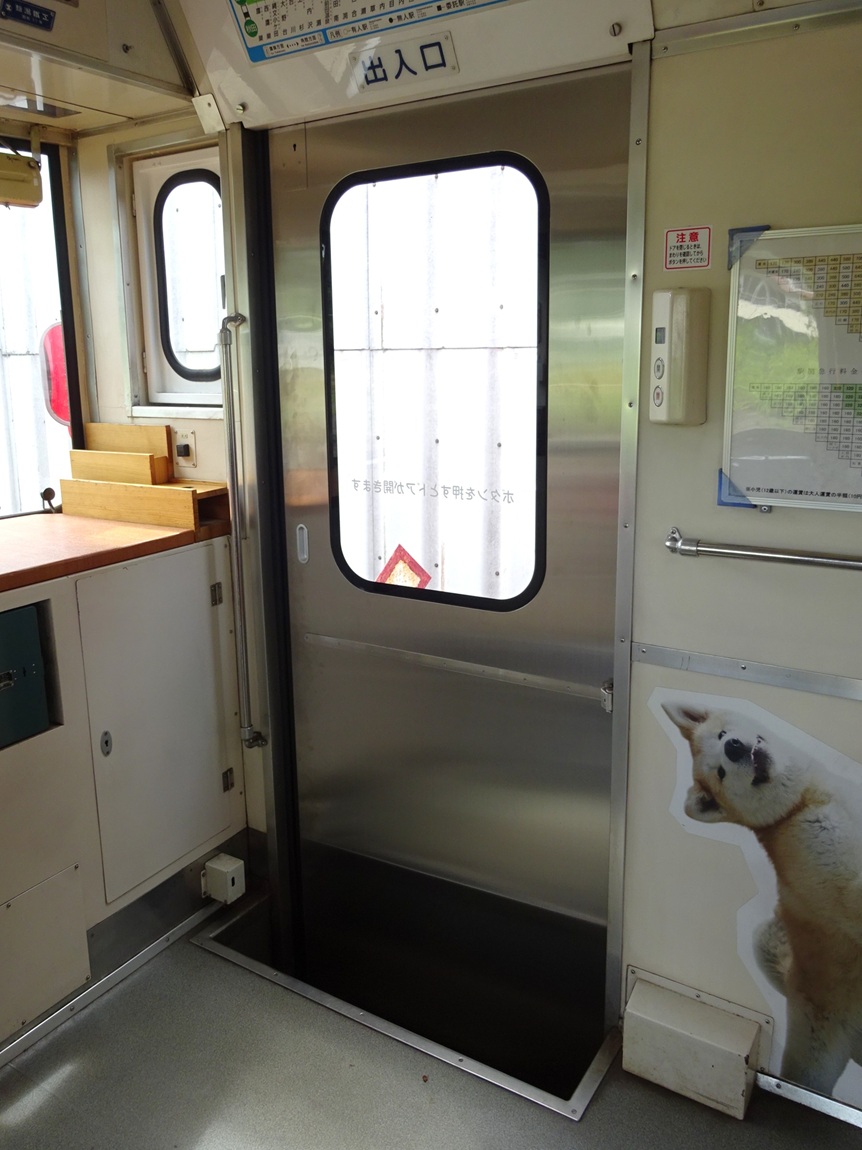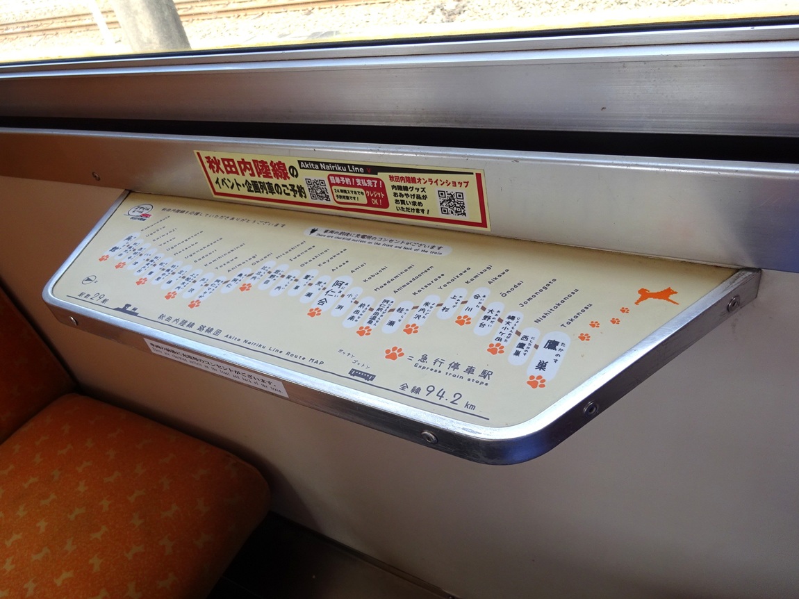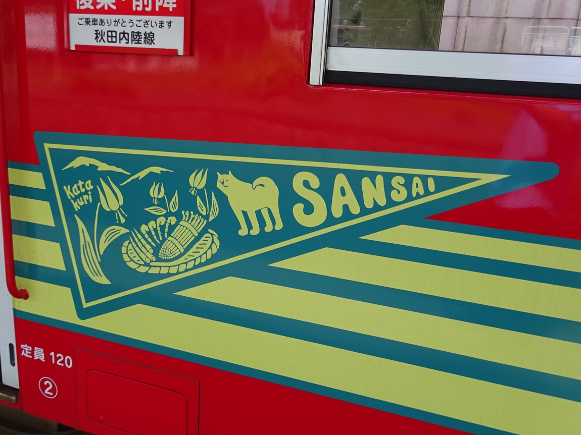 ・AN8800形車内放送 【まもなく米内沢】 AN8800形に限った話ではなくどの形式でも流れますが、急行停車駅の到着時に限り冒頭に「SATOYAMA」というタイトルの曲が流れ、その後の放送も4か国語放送となります。その他の駅はごく普通の2打点が流れるのみです。 |