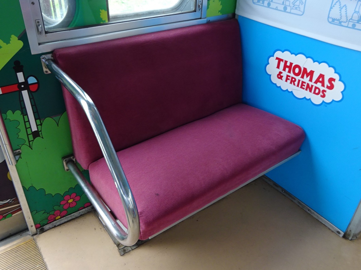 富士急ハイランドでイベントが行われる際、それにちなんだ塗装にされることが何度かありましたが、2007年以降は「きかんしゃトーマス」仕様に内外装を変更した「トーマスランド号」として特定の運用に用いられていました。車内には子供受けが良さそうな物をいくつか追加したほか壁紙を大胆に変更していますが、原型は留めていました。