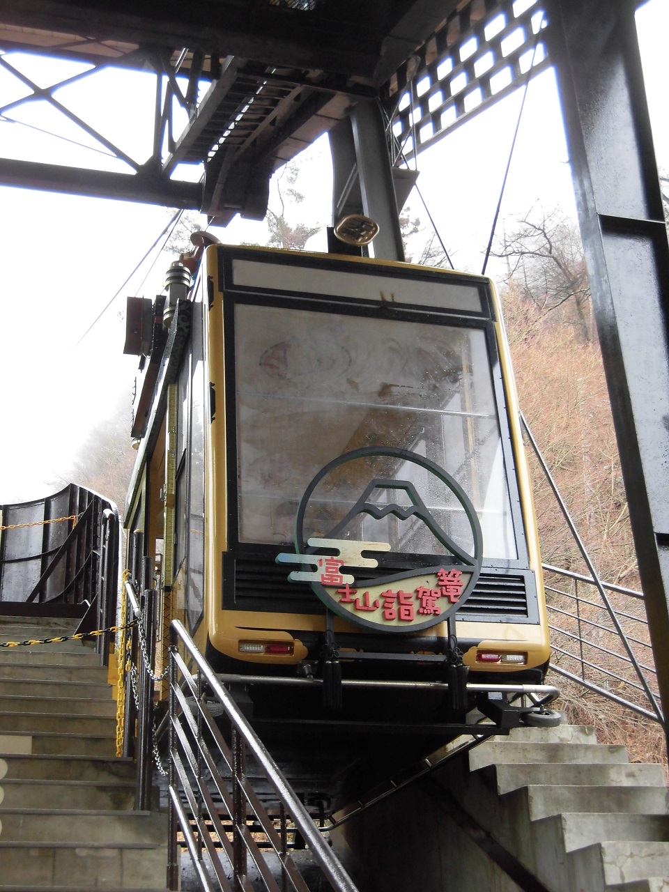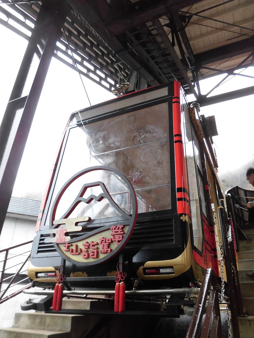 〜河口湖〜富士山パノラマロープウェイ。以前の名前を「天井山公園カチカチ山ロープウェイ」。その名前の通り河口湖の眺望に長けた天井山公園を目指すロープウェイで、おとぎ話「カチカチ山」の舞台になったのもこの辺りと言われている事から、そのおとぎ話をイメージした非常に斬新なロープウェイが運行されています。車内外共に特徴的過ぎる見た目は索道趣味の方なら訪問するだけの価値は十分にあると言えそうです。この車両は開業から数えて3代目の車両で、2001年の全面改修当時からの運行。「富士山詣駕籠」の名前が付けられています。