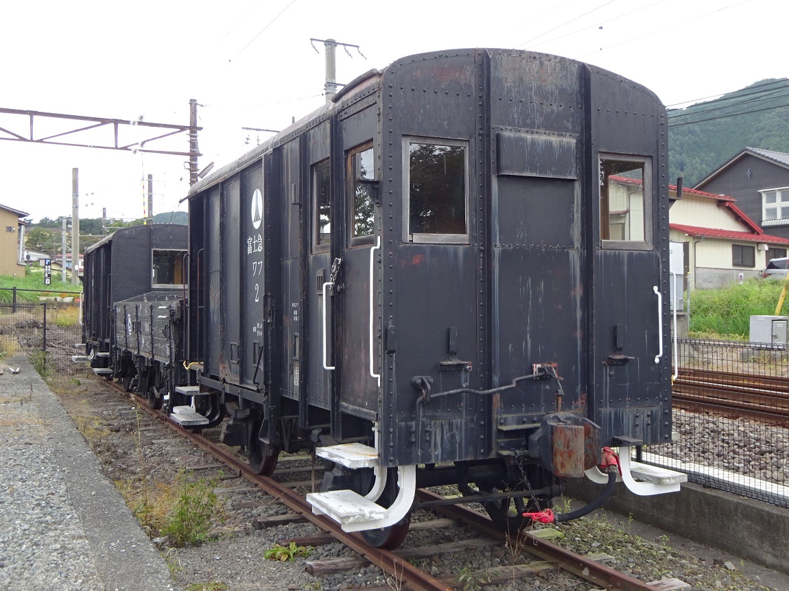 1974年に南海電鉄から譲受した緩急車で、2両が在籍していました。貨物列車の最後尾に連結して使用されていたものの、1990年に除籍されています。現在は2両とも、下吉田駅構内に保存されていますが、車両番号の表記が何故か明朝体で書かれているので、なんだか違和感があります。