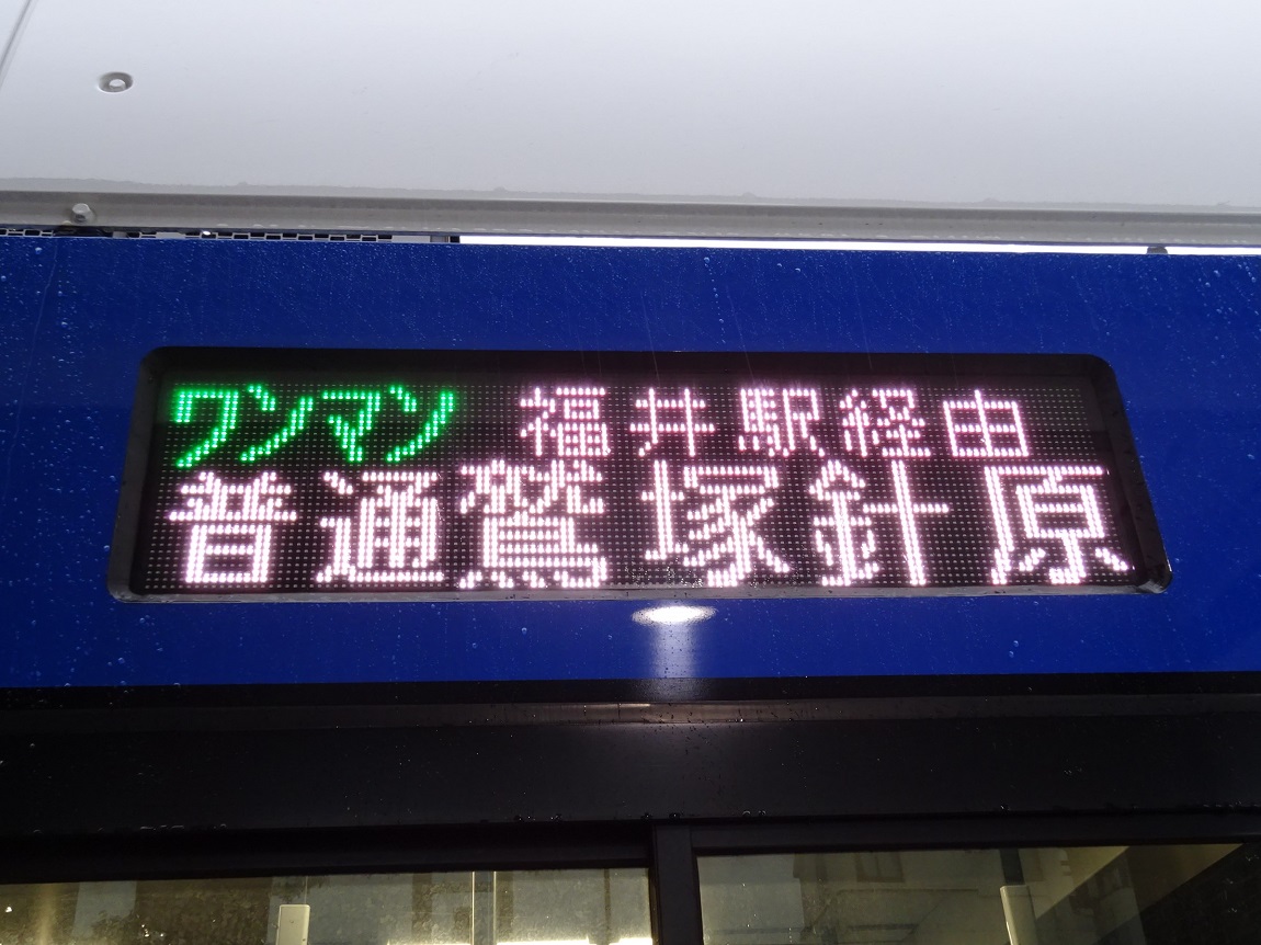 | ワンマン 福井駅経由 普通 鷲塚針原 |