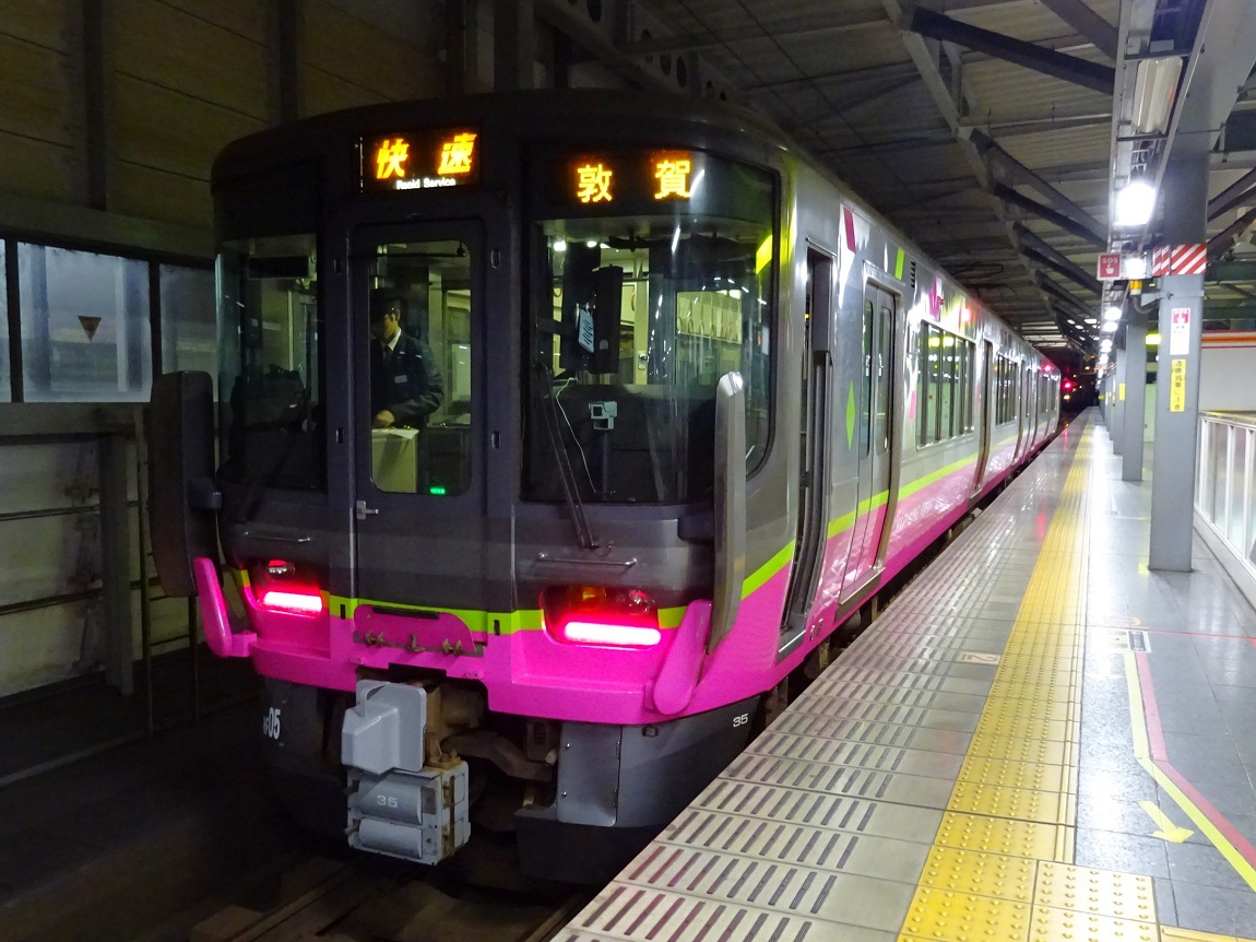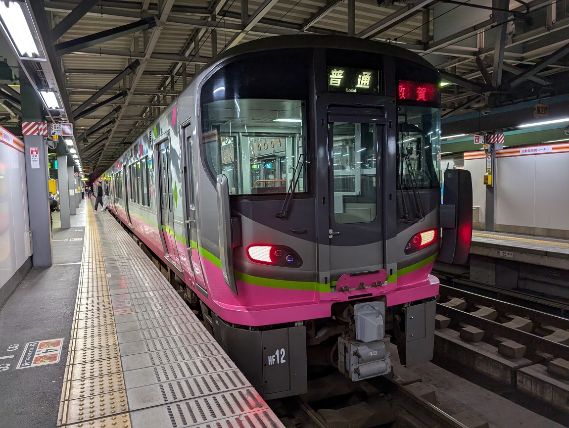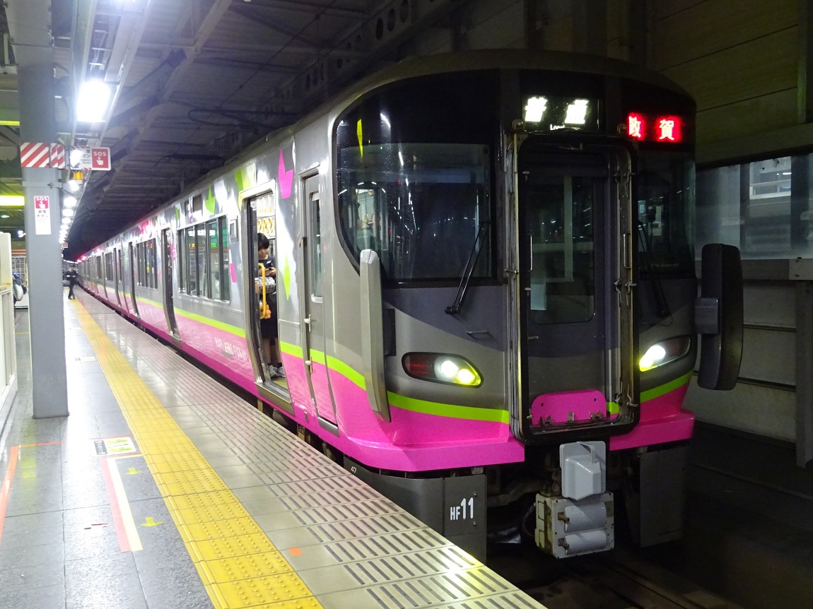 何故かHF10編成とHF16編成の2本のみ、塗装パターンが異なっており、ただでさえ派手なハピラインふくいの車両の中でも際立って派手な出で立ちになりました。HF10編成とHF16編成では行先表示の仕様が異なっており(2024/12時点)、どちらの編成を撮影しても唯一の姿、という事になります。 撮影場所:金沢 |