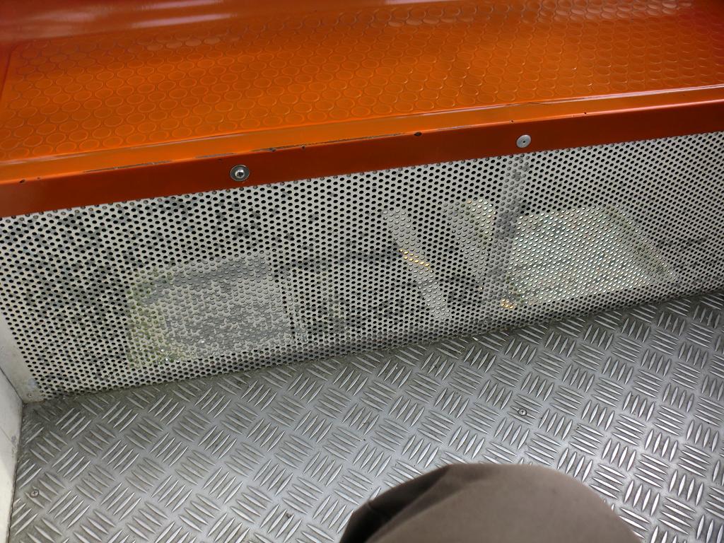 写真では分かりにくいのですが、なぜか座席下の部分は穴があいているので線路下の光景が見えます。相当高いところを走ることもあるスカイビュートレイン。このせいで結構スリリングだったりします。