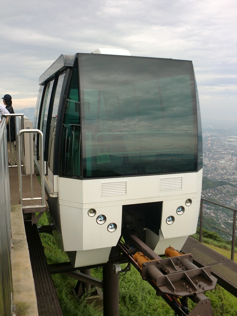 2007年、山上駅から運行されていたリフトの代替として導入されたスロープカー。形式は特に無いようです。運行形態はモノレールに類似しますが、法的にはエレベーターに区分されるので正式には鉄道ではありません。1両のみ在籍。