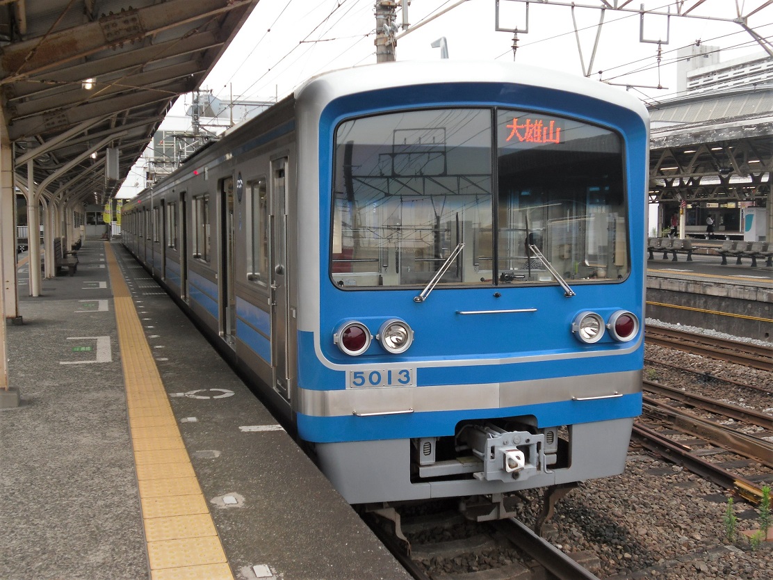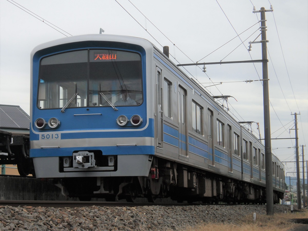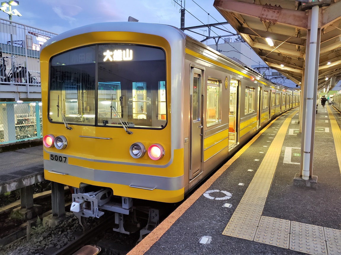 ・5504F 緑町発車(youtube) 大雄山線で運行される5000系は独自の塗装となっている編成が3本(2020/8現在)存在し、そのうち黄色の5504編成は、「幸運の黄色い電車」とも言われていたコデ165形の塗装変更に伴い、その代わりに黄色になったといういきさつがあるようです。「DAIYUZAN イエロー・シャイニング・トレイン」という少々浮かれた愛称が設けられています。 このままゆくゆくは全編成が違う帯色になったりしたら面白いのですが、どうなるやら。 |