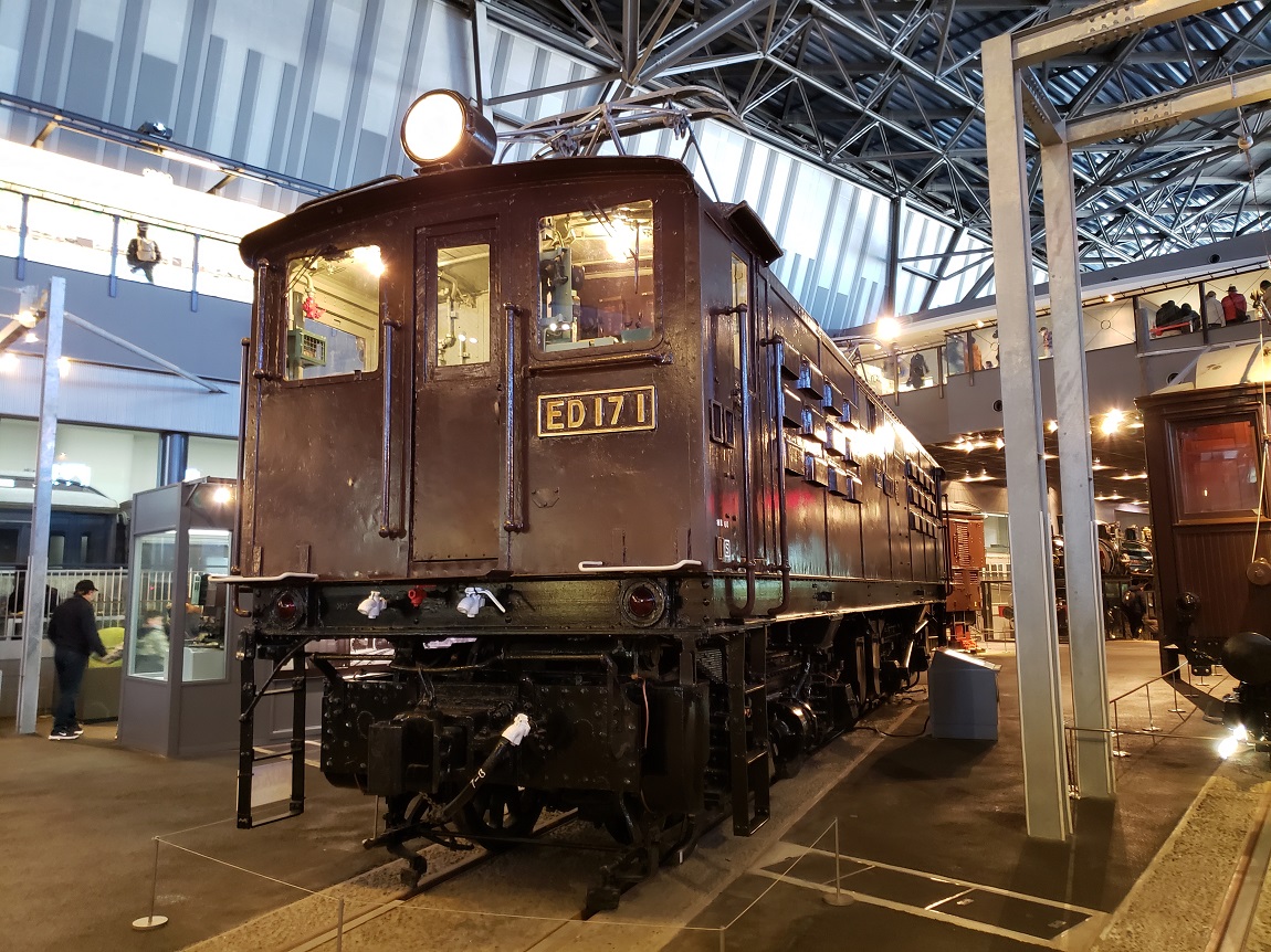 もともとは1923年〜1925年にイギリスから輸入された機関車。これを1930年頃から改造して登場した直流電気機関車がED17。最終的には殆どの主要機器は国内製のものに交換され、1970年代まで使用されていたとのこと。その後は、山梨県の舞鶴城跡公園に保存されていましたが、1997年に大宮工場へ移動、2007年に鉄道博物館が開館するとそちらへ収蔵され、展示が始まりました。