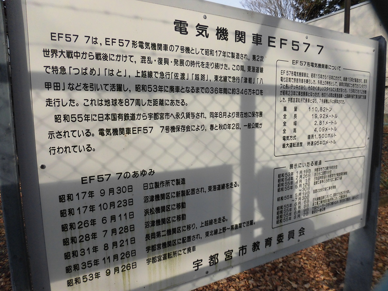 そして、この特徴的な機関車は、最後の住まいとなった宇都宮近辺において1両が保存されています。本来ならば博物館入りしてもおかしくないような貴重な車両なのですが、宇都宮に安住の地を得ている方が、EF57らしいと言えるのかもしれませんね。