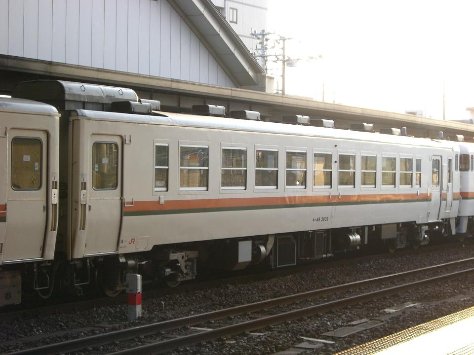 1977年に登場した一般型気動車で、JRで最も標準的なディーゼルカー。北海道から九州まで、日本全国至る所で見る事が出来ます。とにかく頑丈なのが強みで、JR北海道でキハ40の代替として導入されたキハ130が北海道の環境に合わずに老朽化した事から、またキハ40に逆戻り、という事をやってのけた程です。この車両を基本として、両開き扉のキハ47が派生形として製造されました。 JR東海では国鉄型車両を全廃する方針を立てた事と、武豊線の電化によりキハ75の運用に余裕が出来た事により代替が行われ、2016年3月までに引退し、一部の車両が海外へ譲渡されています。 上写真は美濃太田にて。 |