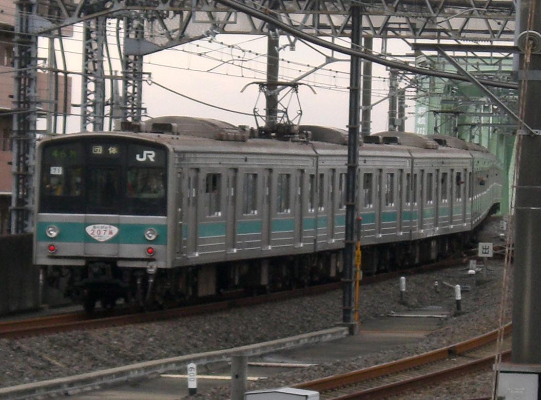 | ・JR東日本207系900番台走行音 常磐線:松戸〜金町(3分50秒:1.2MB) 何号車で収録したか忘れてしまいましたがまぁどこ製のモーターの車両であっても音はコレと同じなので見逃してください。。 モーター音こそ全く異なるものの、乗り心地などは普通の205系となんら変わらないような車両でした。千代田線内の自動放送には当然、対応していません。 |