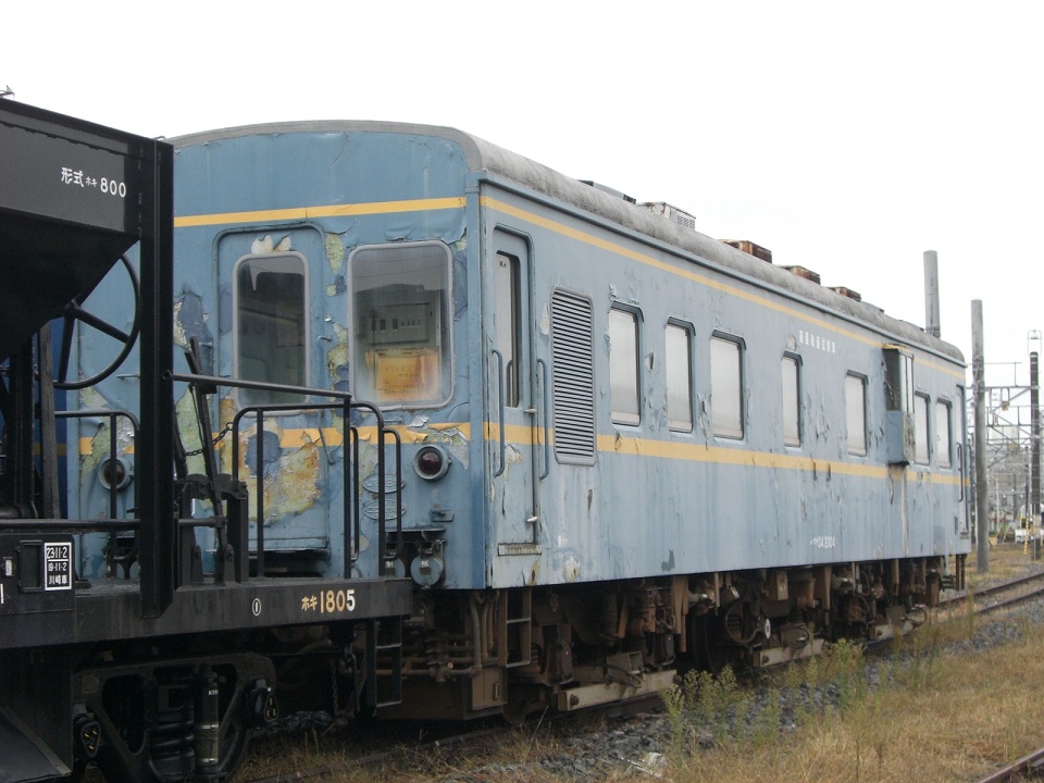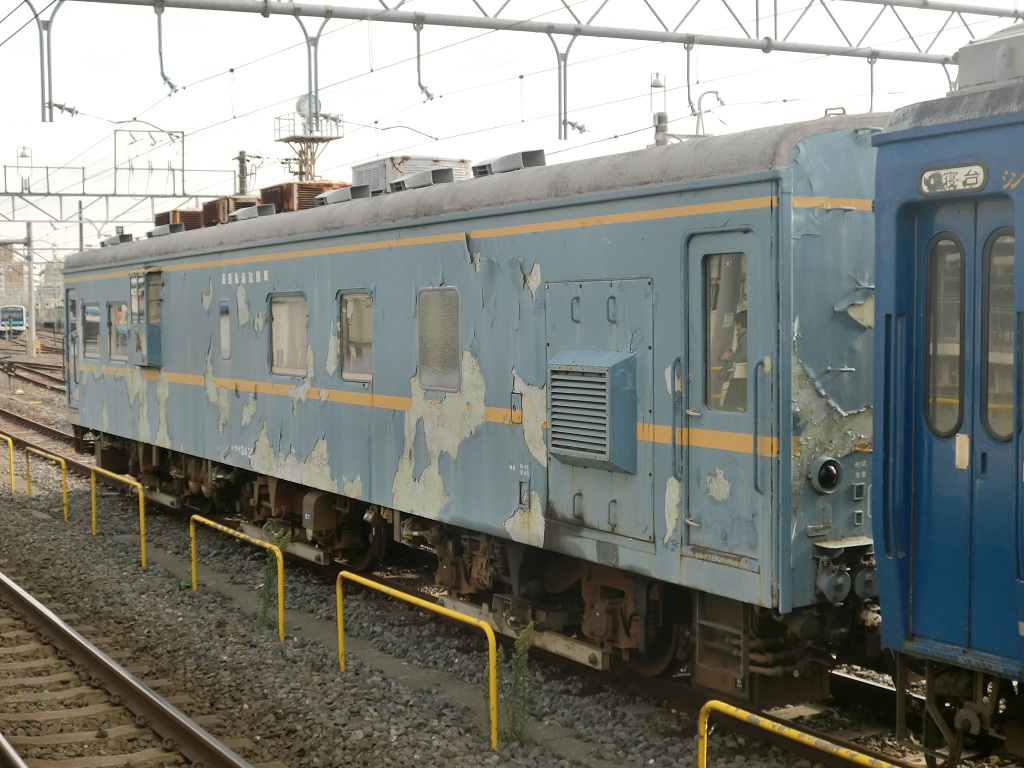 1959年から1981年までの長きに渡り導入された軌道検測用の事業用客車で、一応「客車」に区分されているからか、所謂ブルートレインと同様の塗装を纏っています(JR東日本で後に更新された2002号のみ独自の塗装に変更)。JR各社に細々と引き継がれたものの、2021年12月時点ではJR九州に引き継がれた2009号のみが籍を有しており、その他のJRにおいては後継の車両の導入(主に機関車牽引の手間を省いた気動車または電車の携帯)によって置き換えられています。