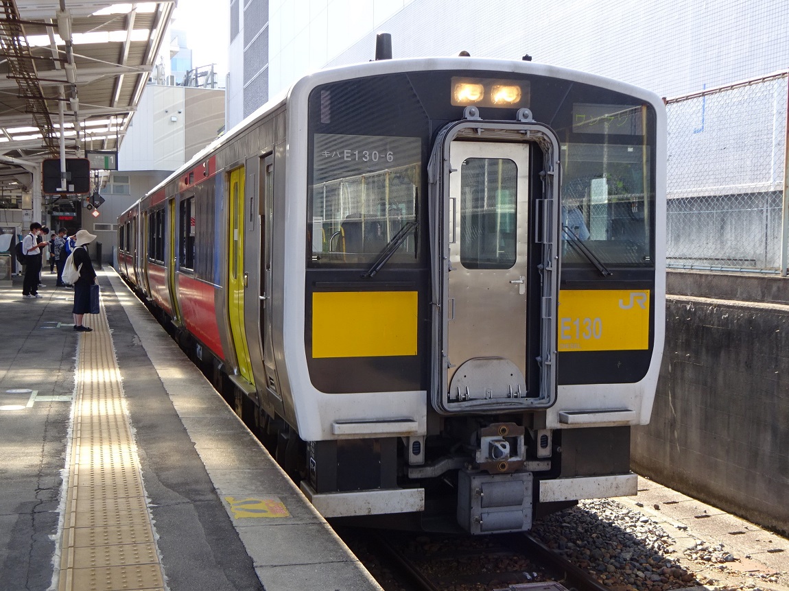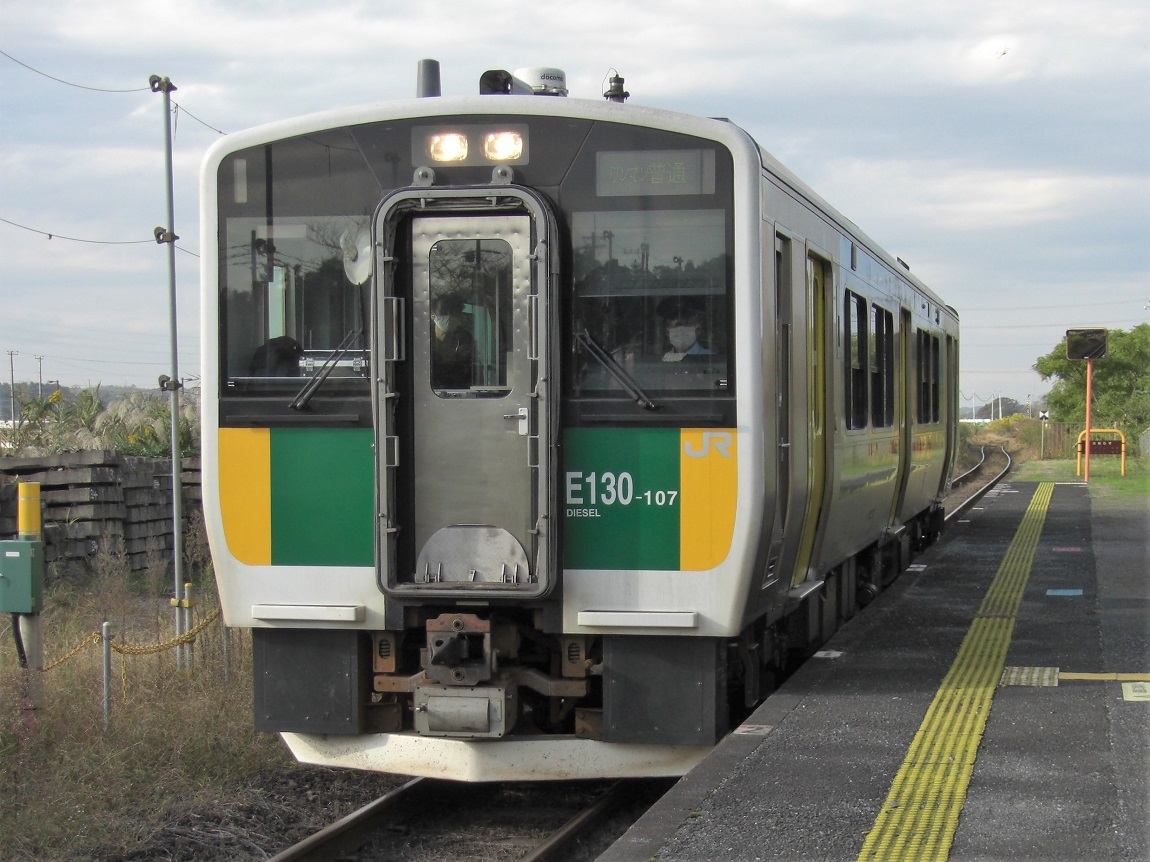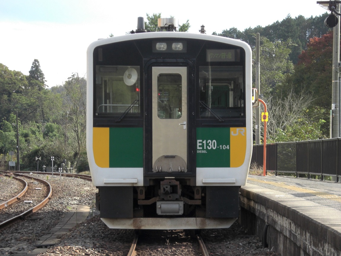| ・キハE130系 走行音 【水郡線】南酒出→額田(1分47秒:580KB) 【久留里線】木更津→祇園 見た目こそ209系統ではありますが、やはりディーゼルカーなのでドアチャイムはディーゼルカーでよく聞くタイプの音になっています。自動放送はJR東日本の新型通勤車etcでよく聞くタイプの声ですが、車内チャイムが設置されています。電車かと錯覚するほどの加減速の速さがE130系の魅力の1つ。 |