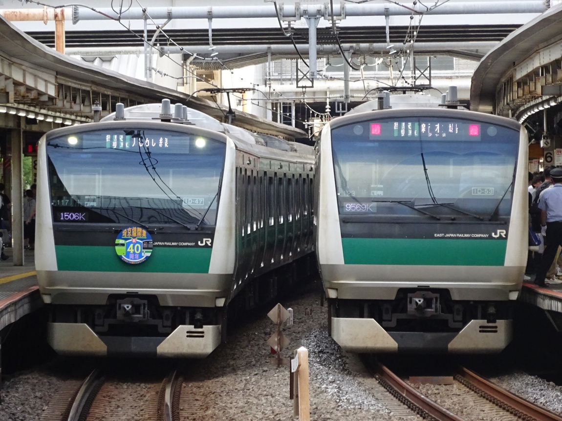・2000番台 松戸発着(youtube) 常磐線の203系(…と、半端に在籍していた207系・209系)の代替の為に導入されたE233系。現在は小田急にも直通するようになり、JR車の運用の柔軟性も随分広がった物だと感じます。 狭幅&貫通扉付である事から見た目は全く異なりますが、乗ってしまえば他のE233系と変わりありません。地下鉄線内だと空調の音が少しやかましい気も。 |