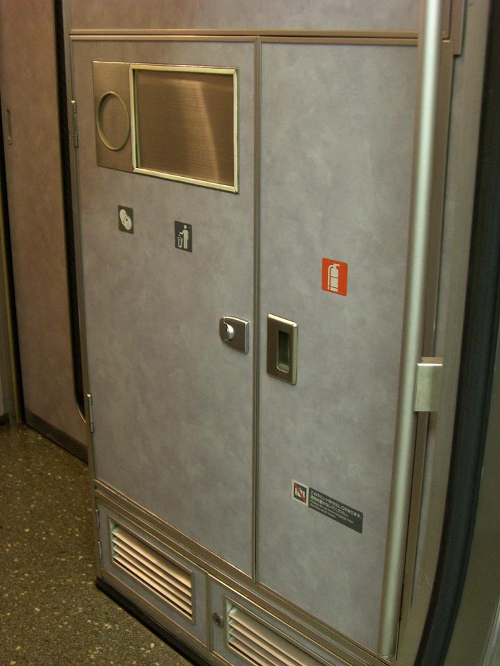 A寝台。2人用個室「カシオペアツイン」を備えており、定員は20名。100番台は車いす対応個室「カシオペアコンパート」を配置。それ故、側扉も車いす対応の大型のものとなっています。その他、車掌室を設置。