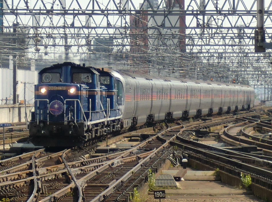 カハフE26形の予備車として24系カニ24形から改造された電源車で、めったに出番は無い上に形式番号に「E」も付きませんが、一応形式上はE26系の一員として扱われています。貴重な反面、この車両が連結されると12号車の展望室はお預けになってしまう(ただの電源車なのでその設備は無い)ので、言ってしまえばハズレな車両とも言えるのかもしれません。趣味的には面白いのですけれど。