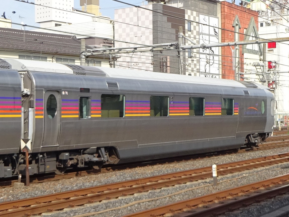 展望室を持つA寝台車で、「カシオペアスイート」が展望室込みの物が1つ、通常個室の物が3つ設けられ、定員は8名。車掌室も設置されています。