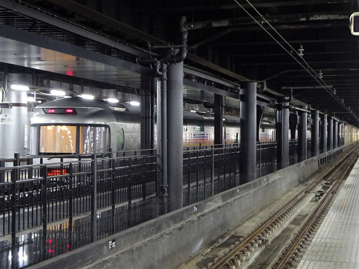 電源車でありながら、ラウンジカーとして客室としての側面も持っている特殊な車両で、札幌方の編成端部の12号車に組成されます。先頭形状は1号車のスロネフE26形と意匠が異なっています。