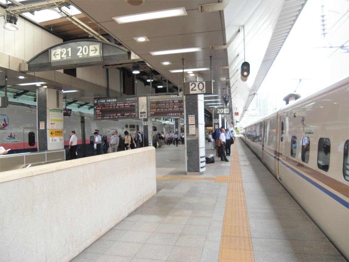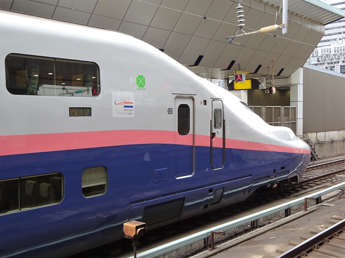 E1系だけでは足りない通勤需要の拡大に伴い登場した形式で、E1系のような大きな車体でありながらより速い走行ができるように前面がとても複雑な形状になりました。てっきり車両が大きいからMAXなのかと思っていたら、実際は「Multi Amenity Express」でMAXとのこと。 基本的に全ての編成が8両編成を組成しており、ラッシュ時にはこれを2本連結した堂々の2階建て16両編成の新幹線を見ることが出来ます。もともとは福島まで「つばさ」と連結する運用に用いられていたのですが、現在は東北新幹線の運用から撤退し、上越新幹線でのみ用いられるようになりました。上越新幹線専属になった頃に、黄色の帯をピンクに塗り替え、朱鷺をモチーフにしたロゴも入れられています。 老朽化と新幹線の輸送形態の変化によりE7系による置き換えが進んでおり、2021年10月で定期運行を終了する予定のようです。2階建て新幹線の歴史もここで終焉となるのでしょうか。 上写真はP20編成、東京にて。 |