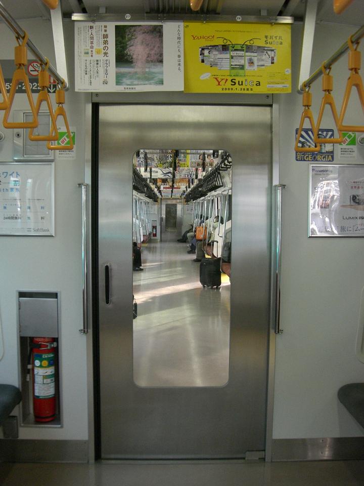 ・E531系ドア開閉(youtube) 209系統でドア上に赤いランプがつき、ドアそのものにも黄色いテープがつけられたのはこの車両が最初。今では双方ともにすっかり広まった特徴です。扉はリニアモーター式のもののみ。閉まりきった時の音が随分とにぎやかです。 |