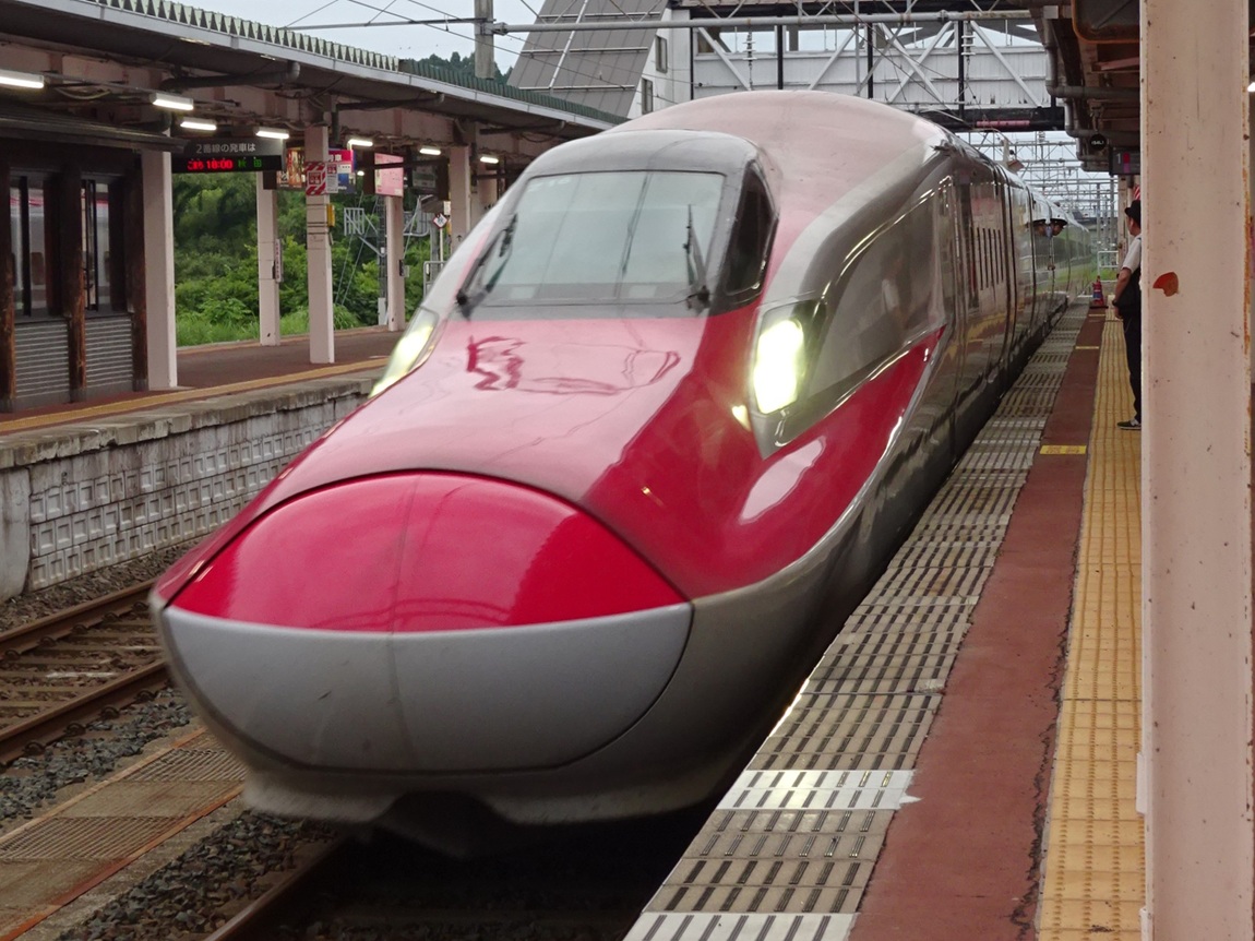 | ・E6+E5系 一ノ関通過(youtube) さすがに速いですね。一ノ関のような通過線を含めた4線が建物の中に入っている構造の駅では轟音もかなりのもの。15秒あたりから登場します。 |