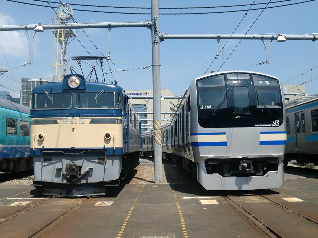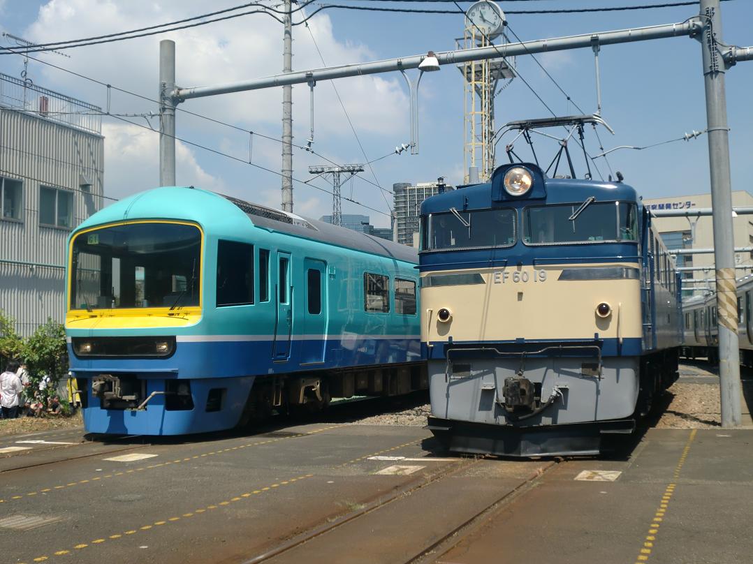 1960年に登場した老兵機関車で、EF65の先輩格となる車両です。貨物用が0番台、寝台用が500番台とされ、合計で143両が製造されました。現在は19号がイベント用に在籍しています。定期運用はありませんが、臨時列車に度々充当されており、注目を集めています。この車両、以前「やすらぎ」というジョイフルトレインの牽引機となっていたことからそれに合わせた色に塗装されていましたが、現在は国鉄色に戻されています。 上写真は19号機。東京総合車両センターにて。 |