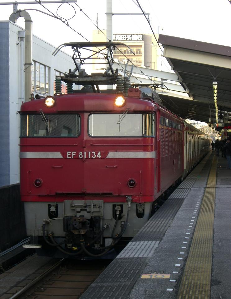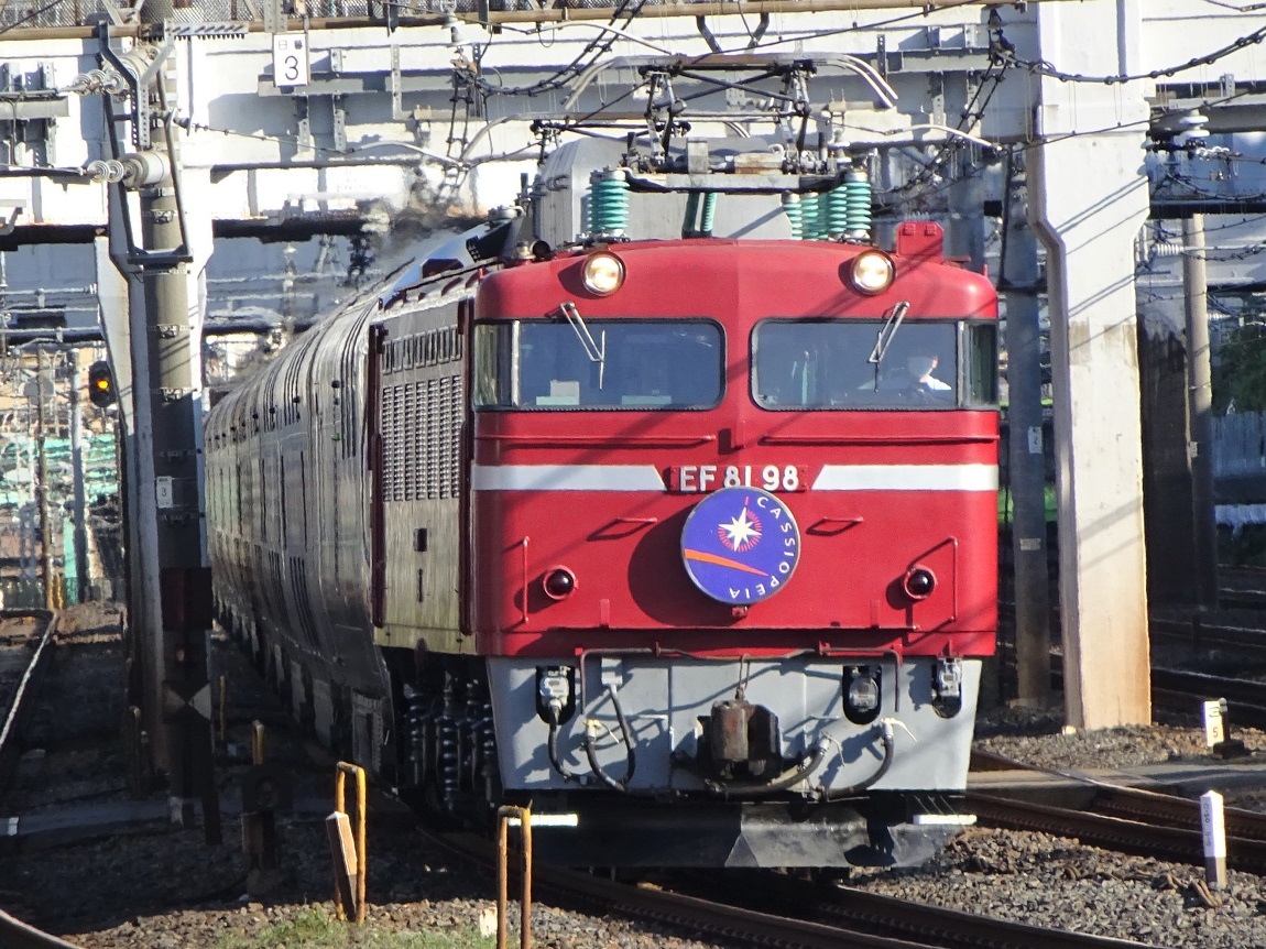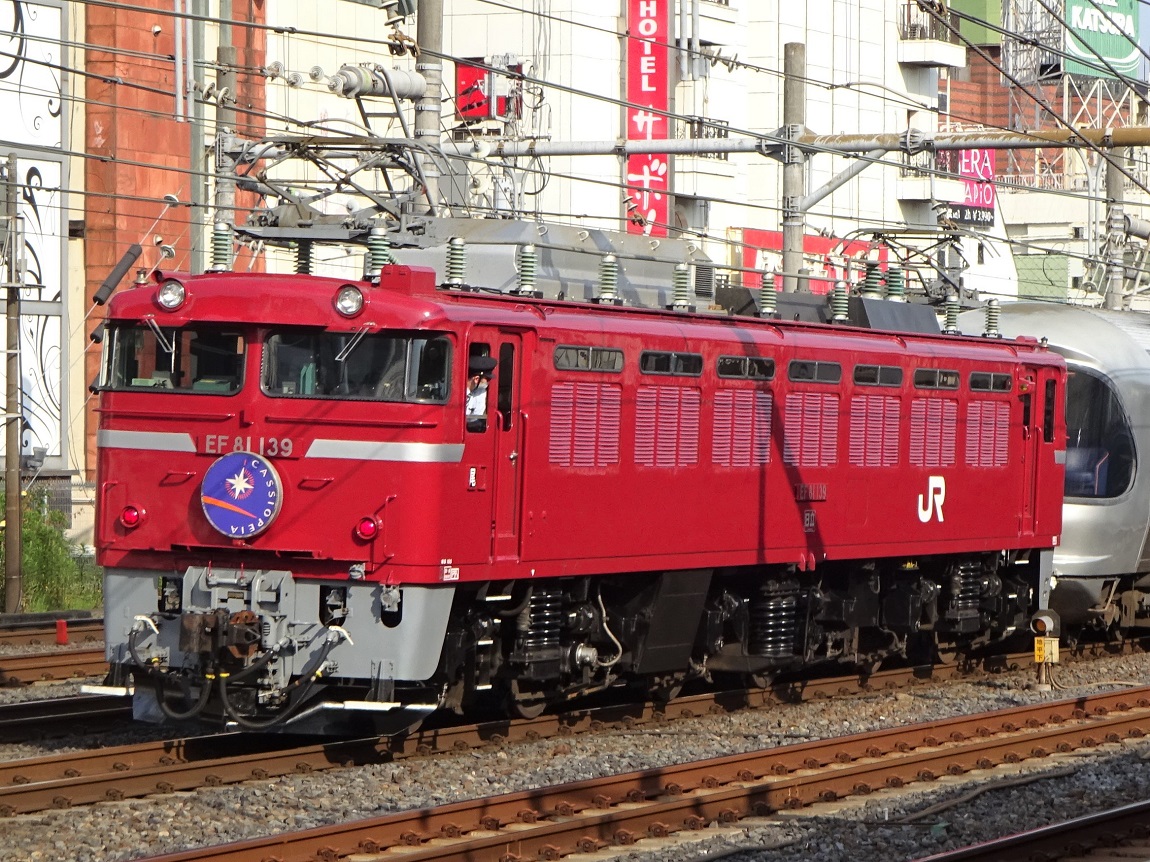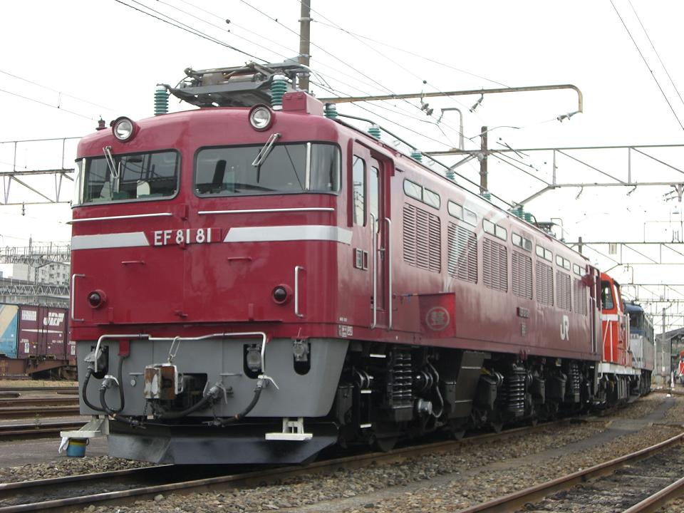 交流・直流両方に用いることのできる機関車として登場していたEF80の後継機。国鉄が民営化した際にはJR東、西、九、貨の4社に引き取られ、各社用途も塗装も様々な使われ方をしています。EF81の担当列車に於いてもっとも有名なものとして「北斗星」「カシオペア」が挙げられます。また、貨物に興味のある方にとっては北陸地区の長大且つ高速運転となる貨物列車と、いわゆる「安中貨物」と呼ばれる5388レがEF81担当列車としてメジャーだった存在といえそうです。