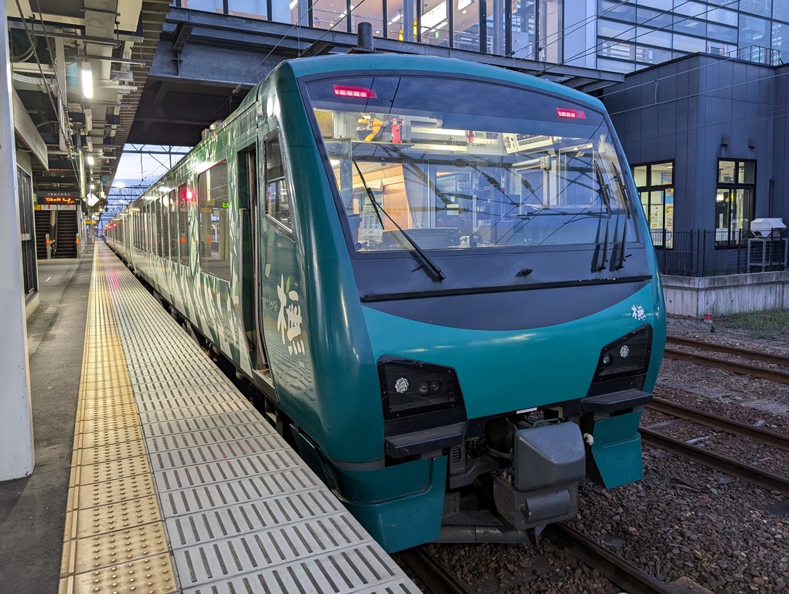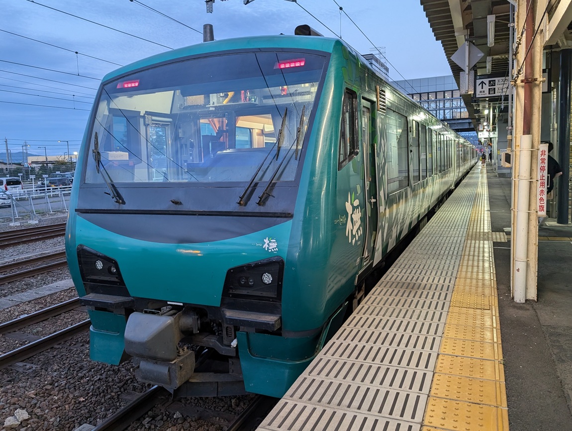 キハ40系列で運行されていた「リゾートしらかみ ぶな」の編成の代替を目的として2016年に導入された車両で、青池編成に次ぎ、HB-E300系による導入となりました。青池編成との違いとして、3号車に「ORAHO(おらほ)カウンター」が設置されているようです。