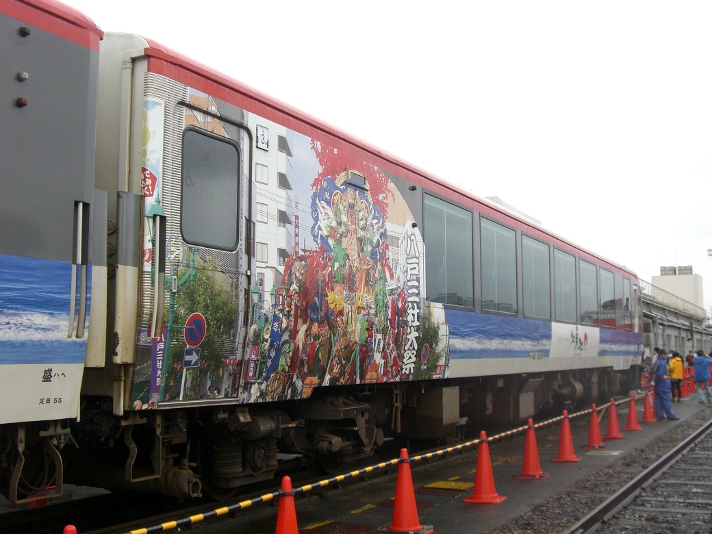 東北新幹線八戸延伸に合わせて導入したリゾート列車で、下北・津軽方面。言わば青森県内の観光輸送を目的として導入されています。赤い色は青森県内の夏祭りがイメージ。黒は窓の塗装に合わせたもの。どこかで見たことがある配色ですが、この塗装にはそういった意味があった、というわけです。リゾート列車の中では地味な見た目だったかもしれません。
