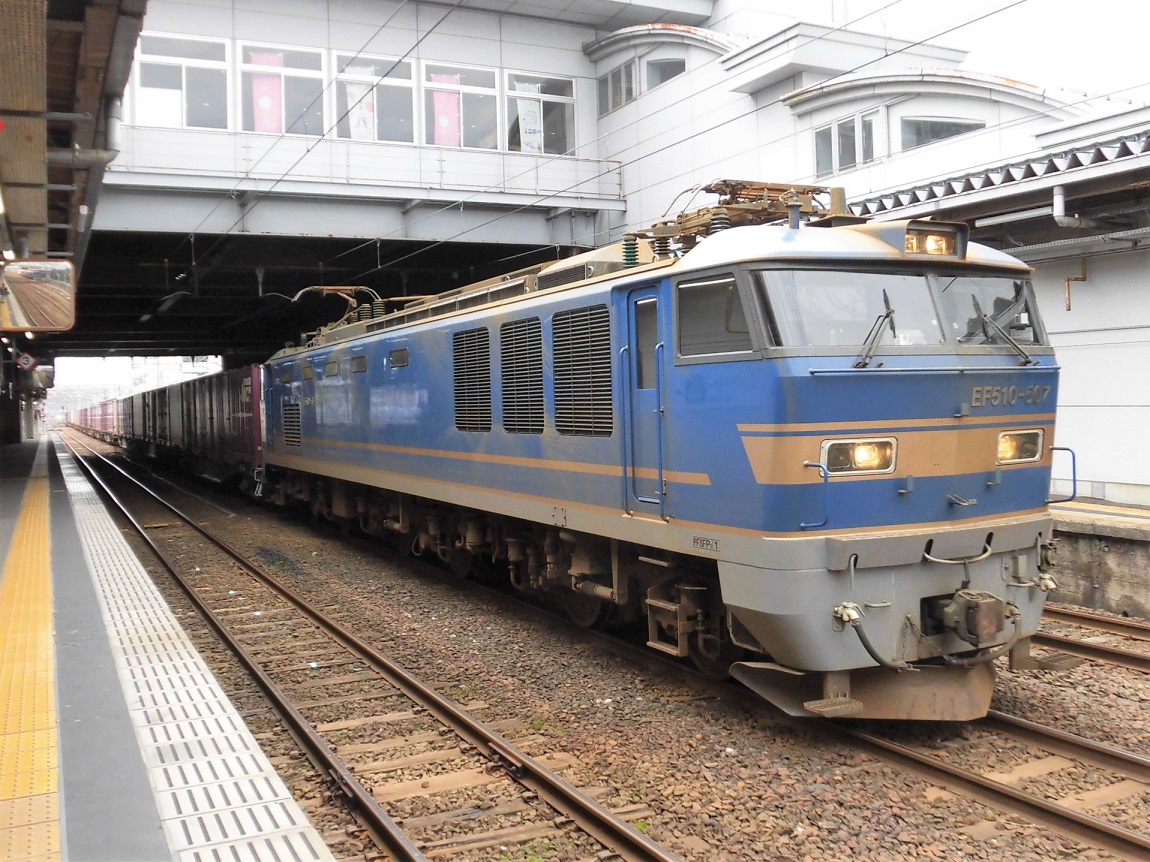 EF81の後継車両として登場した機関車で、愛称は「RED THUNDER」。 EF210と同コンセプトの車両で、EF210との違いは交流直流両用なこと。主にJR貨物のEF81の後継として活躍しています。 後に、JR東日本が「北斗星」「カシオペア」の牽引用、および田端所属のEF81の後継機として500番台を導入しましたが、それらは北斗星&カシオペアの定期運行終了後にJR貨物に譲渡され、青または銀色のまま運行を続けています。 上写真は13号。高岡にて。 |