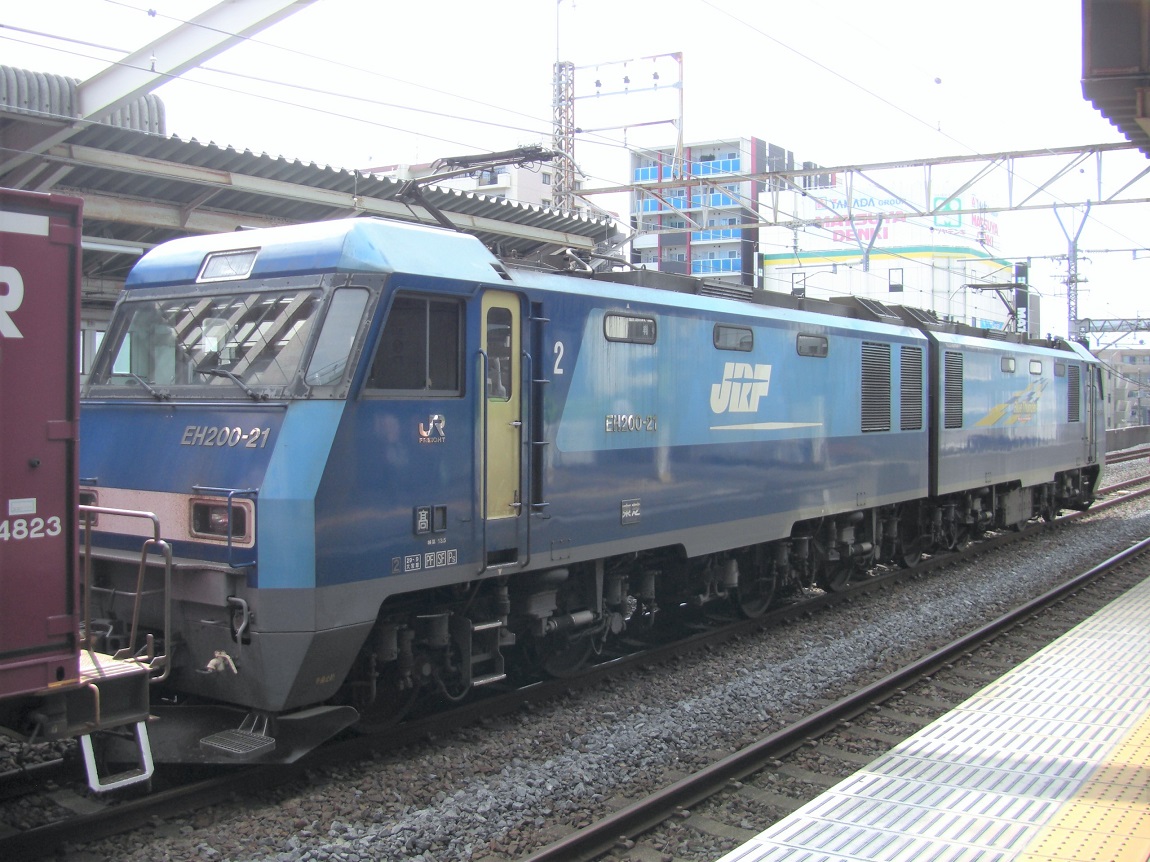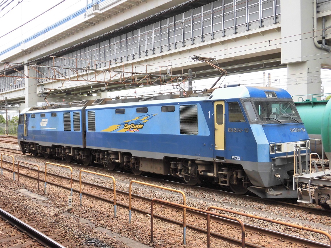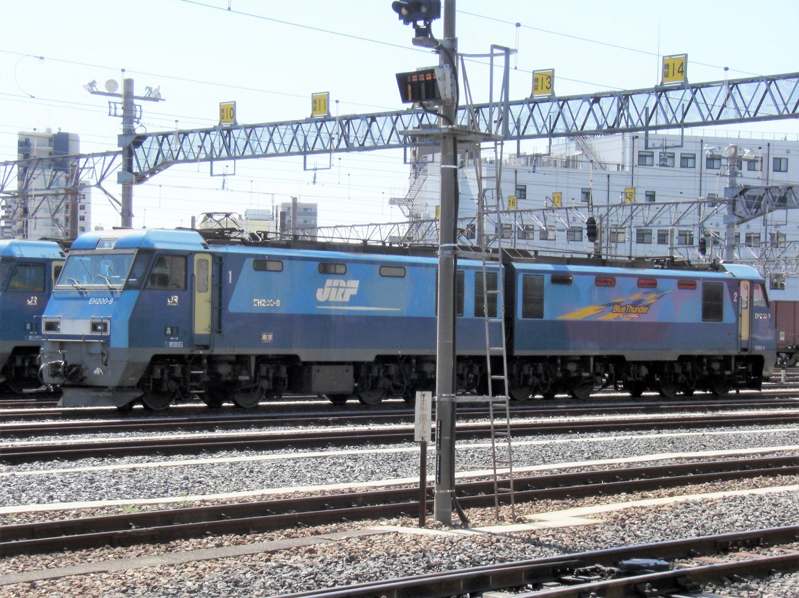 元々中央本線や篠ノ井線で運行されていたEF64形の重連での貨物運用の代替を目的として2001年に登場したのがEH200形で、EH500形に次ぐ2車体連結型の機関車となり、1機でEF64形の重連に相当する運用をこなすことができます。2020年8月現在、すべての車両が高崎機関区に配置され、中央東線、篠ノ井線、しなの鉄道等のEF64の運用を置き換えた他、倉賀野〜川崎貨物の運用を中心に、首都圏に上ってくる運用も多く存在しているため、行動範囲は広い存在と言えます。