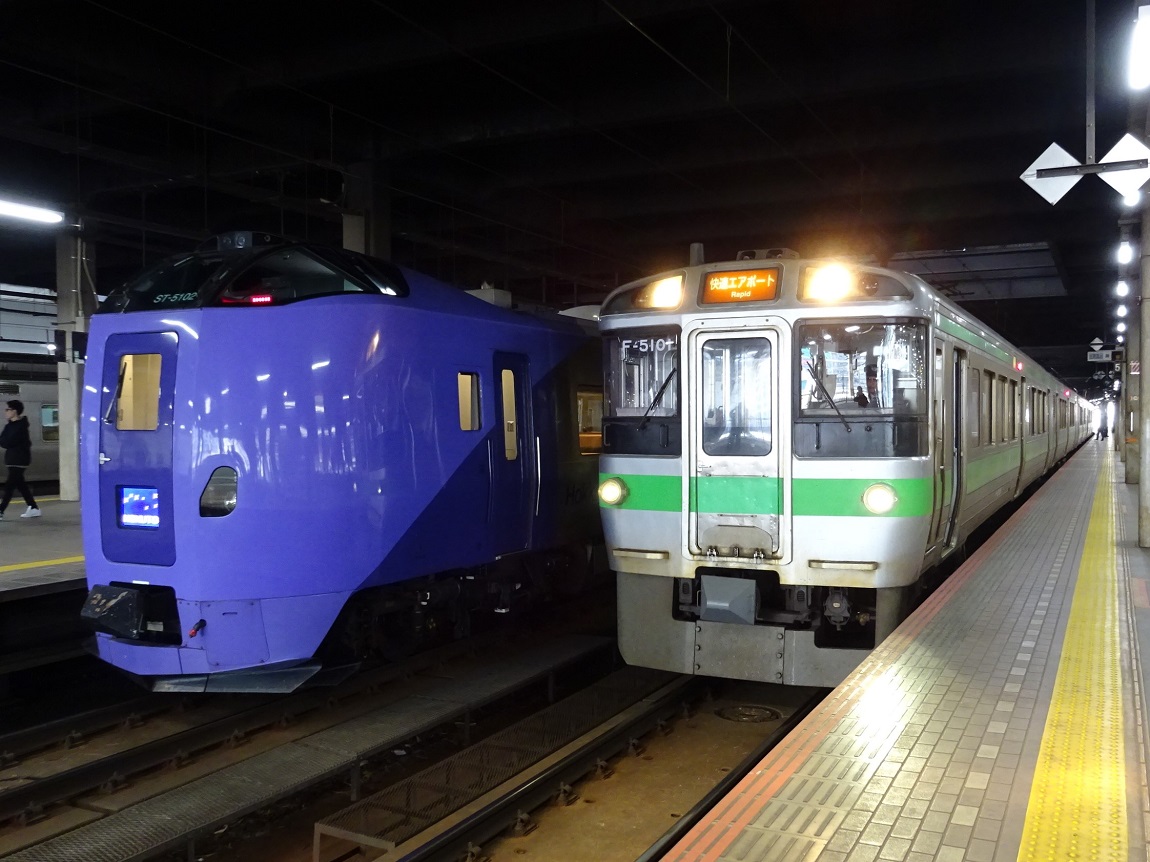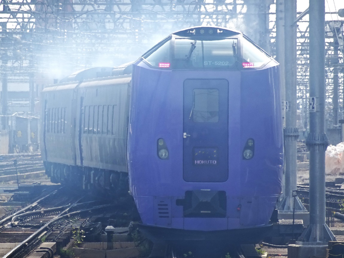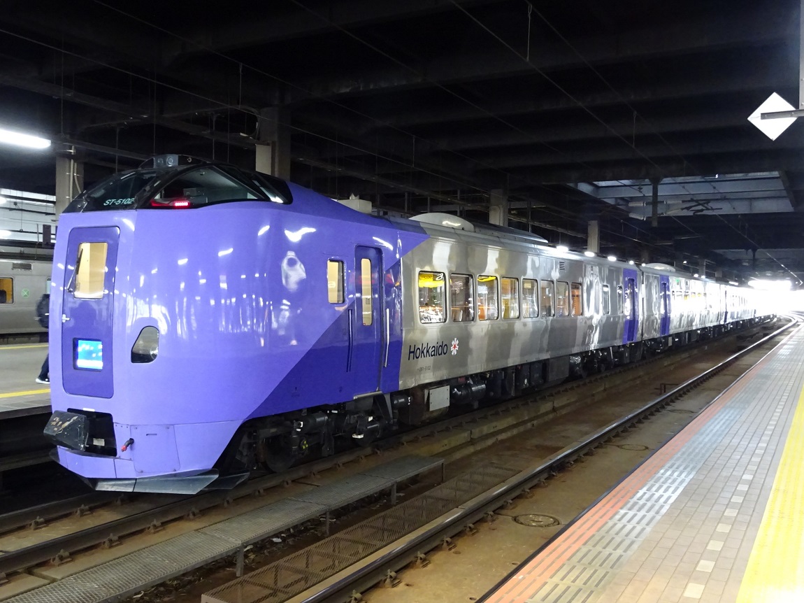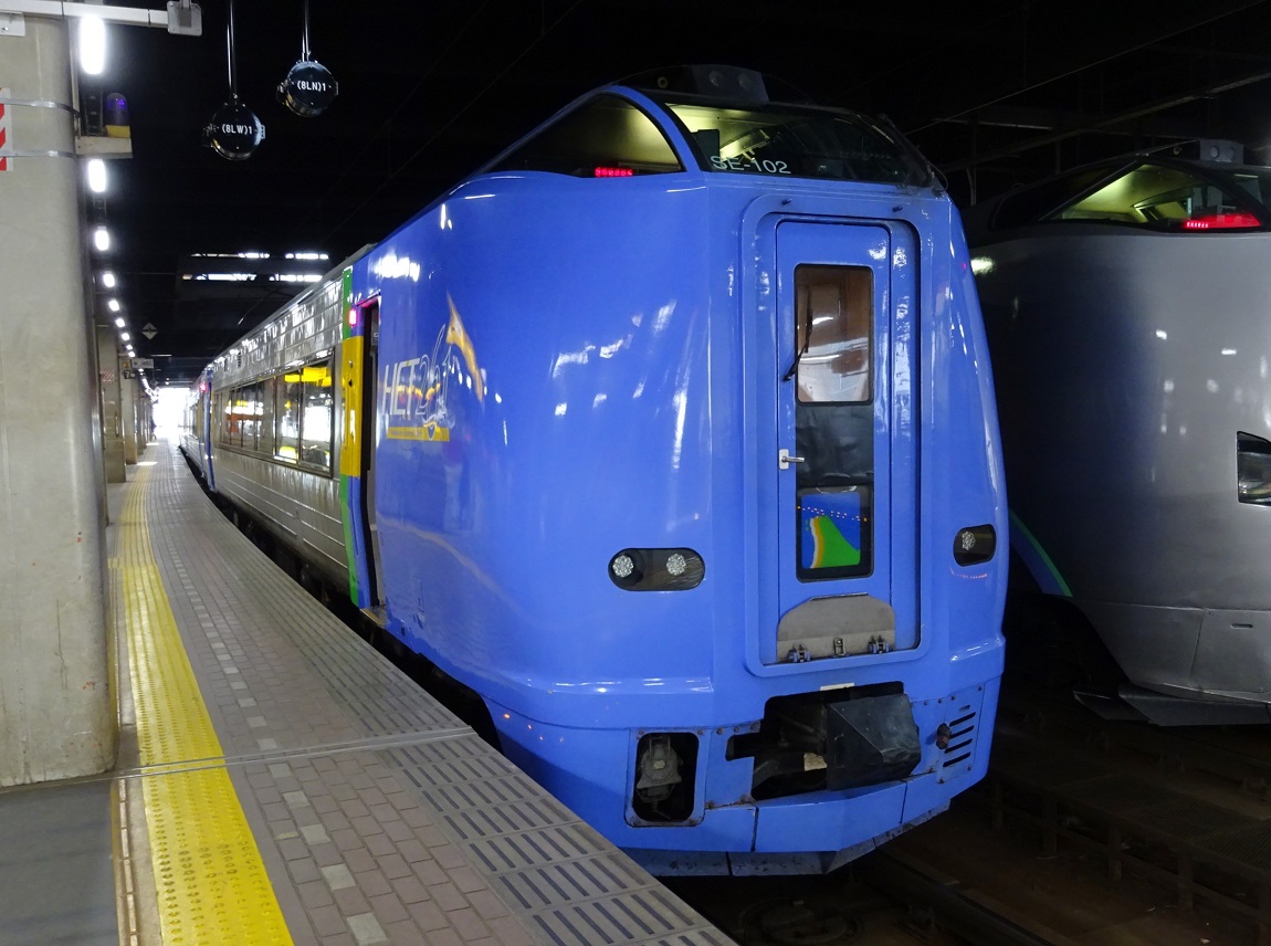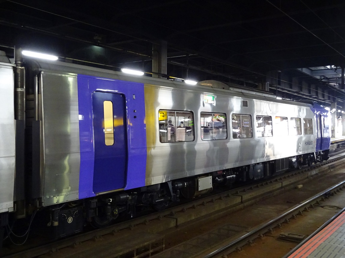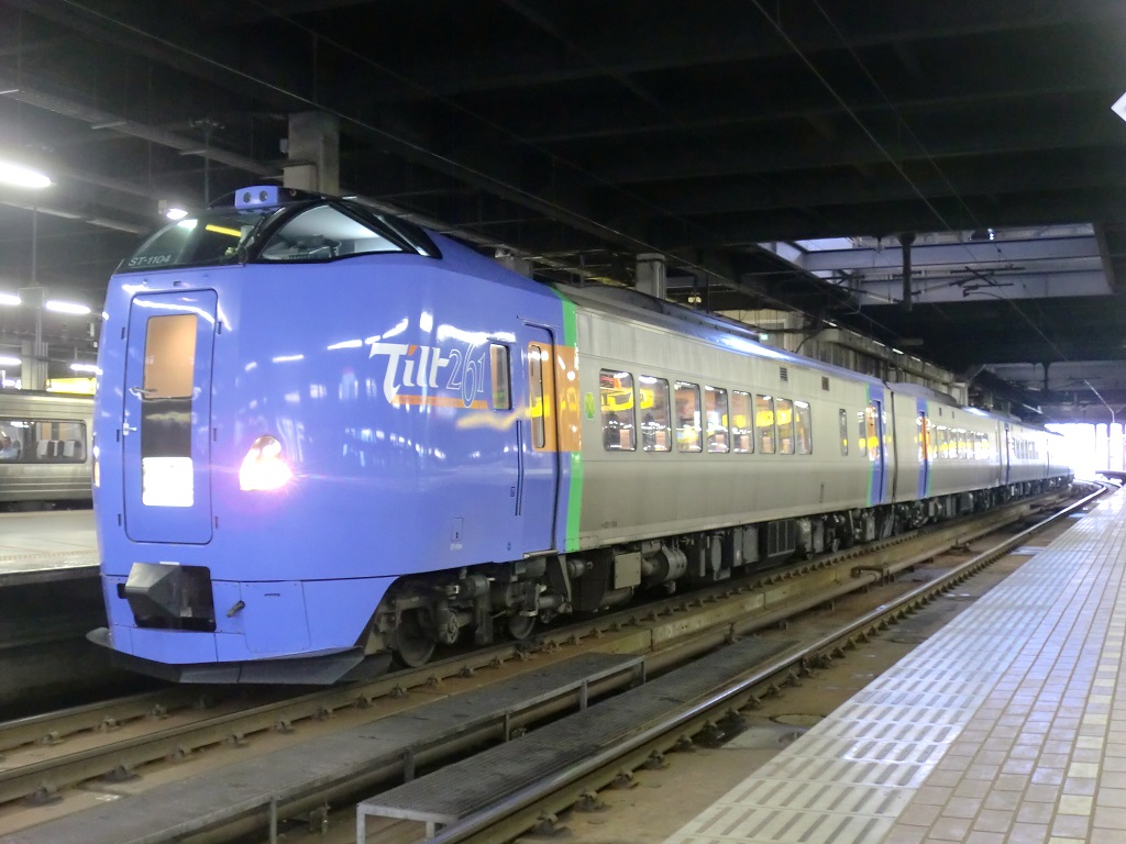 SE-202編成+SE-104編成 特急「スーパー宗谷」札幌発車(youtube) JR北海道のディーゼル特急は、基本的に1特急に1形式の形をとっている(時々キハ283の「スーパーとかち」が運用される、など例外はあるようです)ので、記録自体は楽です。キハ261-0は「スーパー宗谷」に充当されています。ディーゼル特急とは思えないくらい加速が良いのには驚かされました…。本数が少ないので見たい場合は時間を確認しておいた方が良いかもしれません。 この時の編成はSE-202編成と増結用2両のSE-104編成を繋げた6両編成でした。通常は4両編成で走っているようです。 |