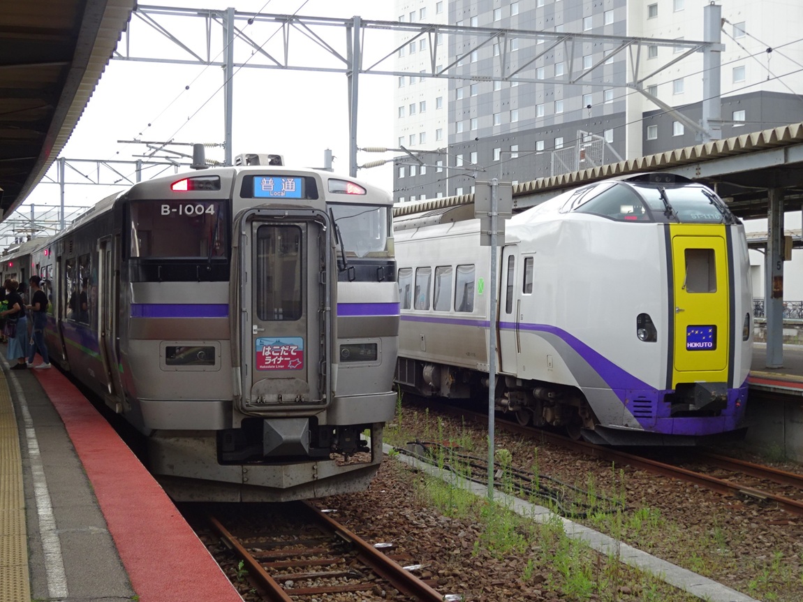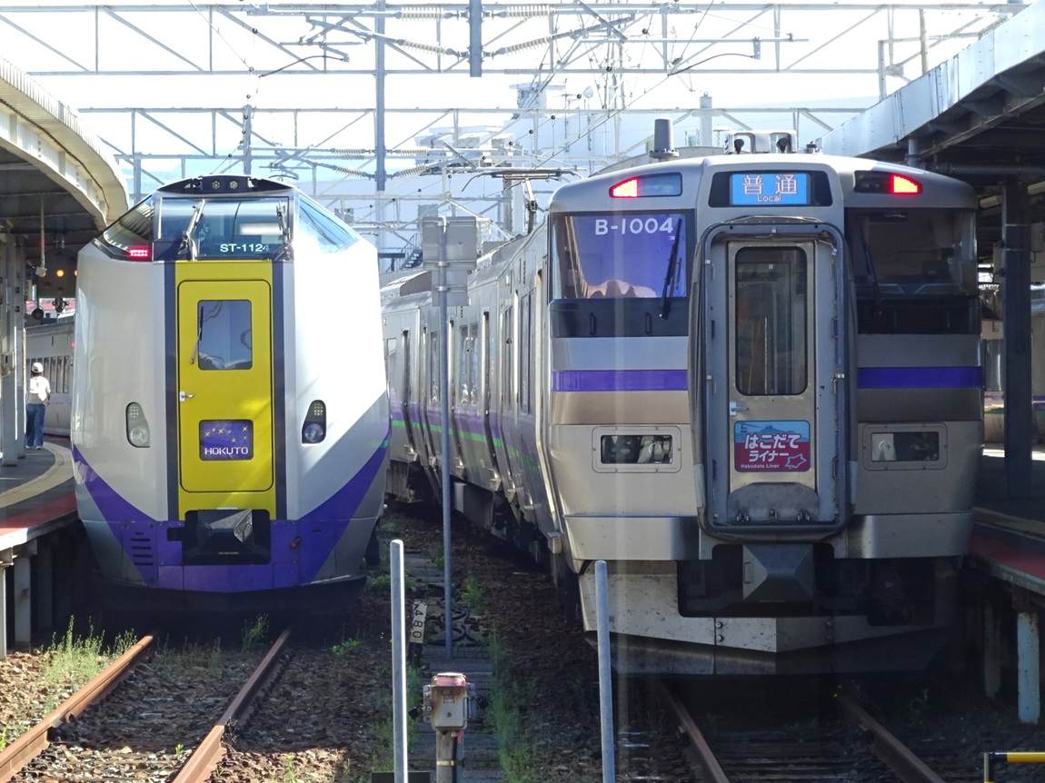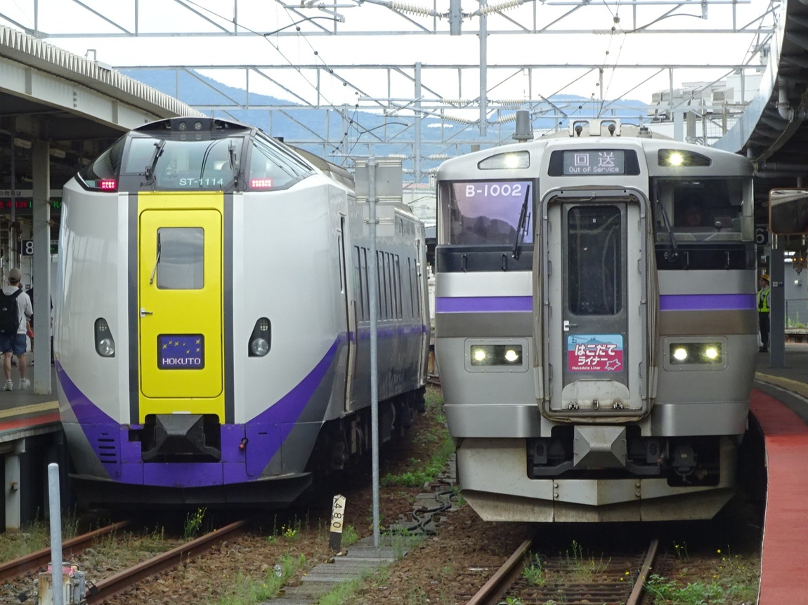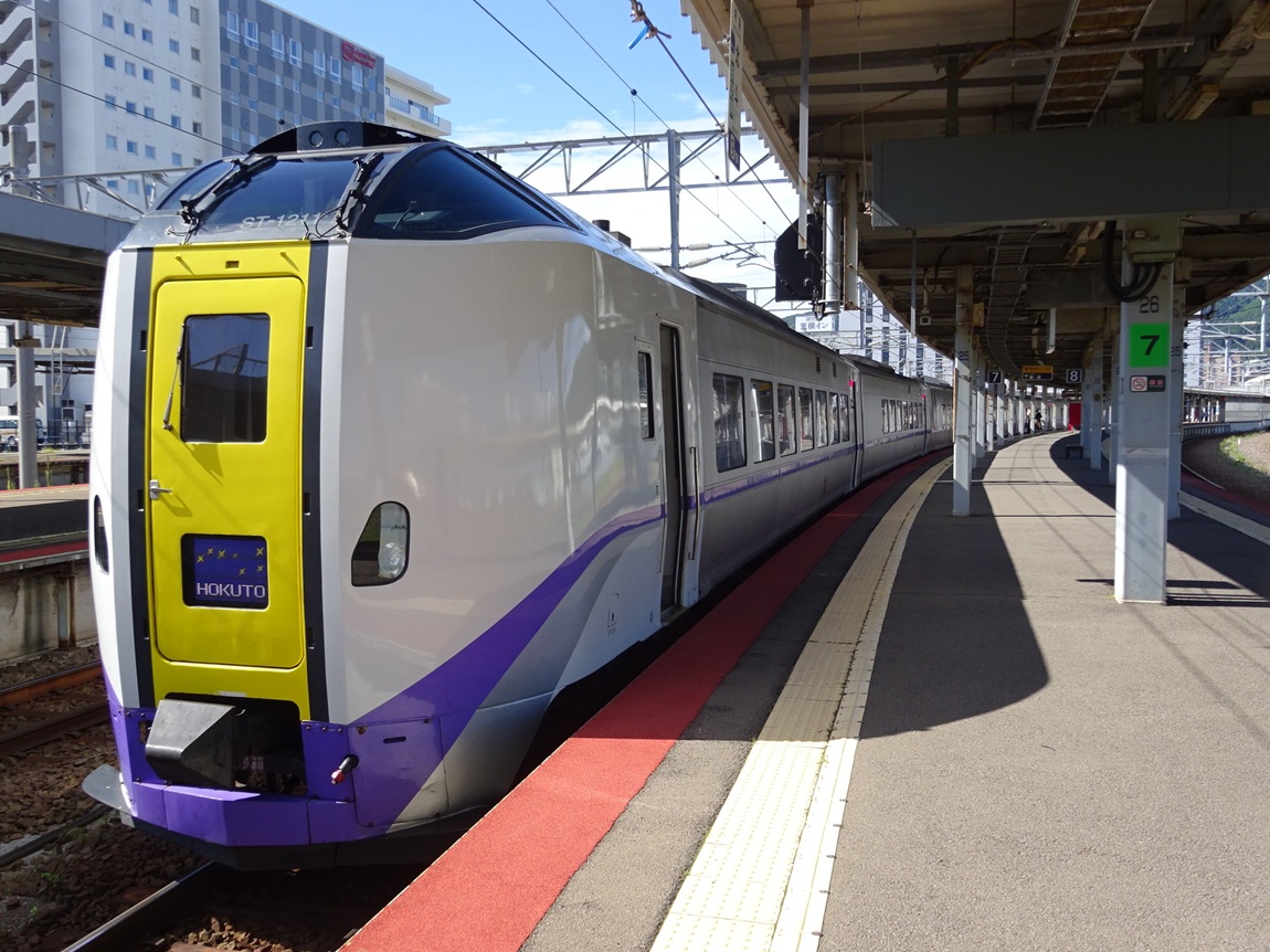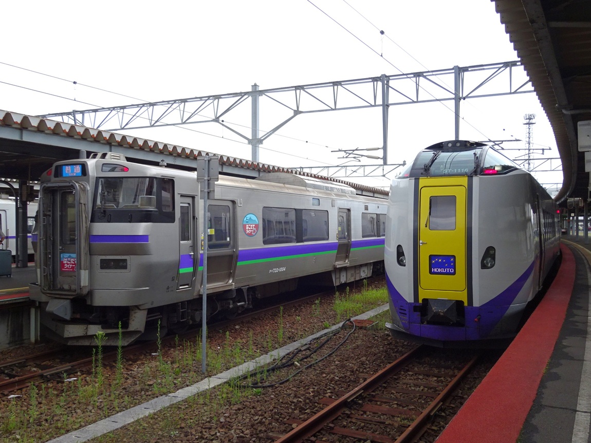 SE-202編成+SE-104編成 特急「スーパー宗谷」札幌発車(youtube) JR北海道のディーゼル特急は、基本的に1特急に1形式の形をとっている(時々キハ283の「スーパーとかち」が運用される、など例外はあるようです)ので、記録自体は楽です。キハ261-0は「スーパー宗谷」に充当されています。ディーゼル特急とは思えないくらい加速が良いのには驚かされました…。本数が少ないので見たい場合は時間を確認しておいた方が良いかもしれません。 この時の編成はSE-202編成と増結用2両のSE-104編成を繋げた6両編成でした。通常は4両編成で走っているようです。 |