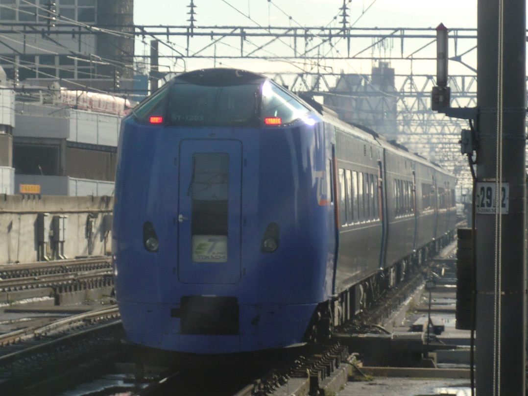 ST-1104編成 特急「スーパーとかち」札幌発車(youtube) キハ261-1000は主に「スーパーとかち」に用いられています(この他、平日の朝夕に札幌〜手稲で運行されるホームライナーにも充当されているようです)。車体が789系に準じた物となったため、0番台とは全く異なる雰囲気となりました。 |