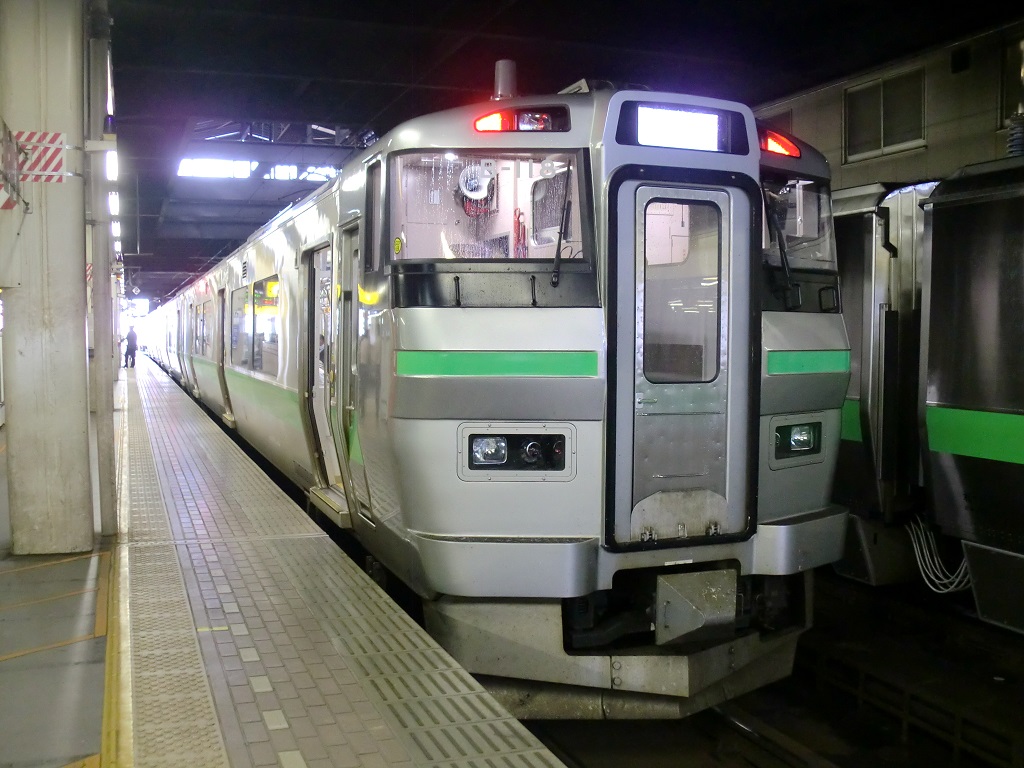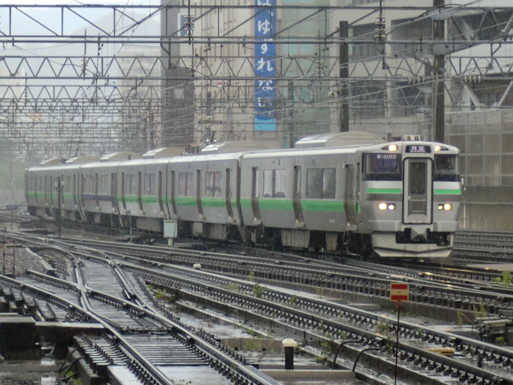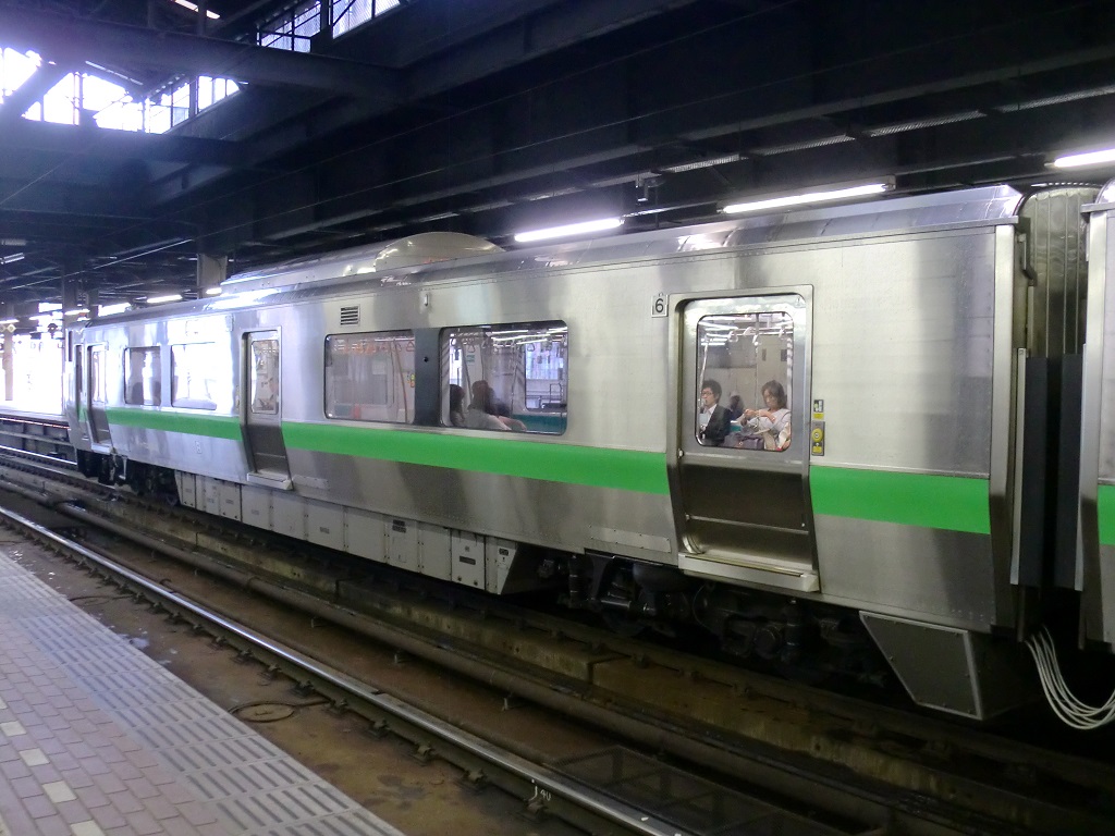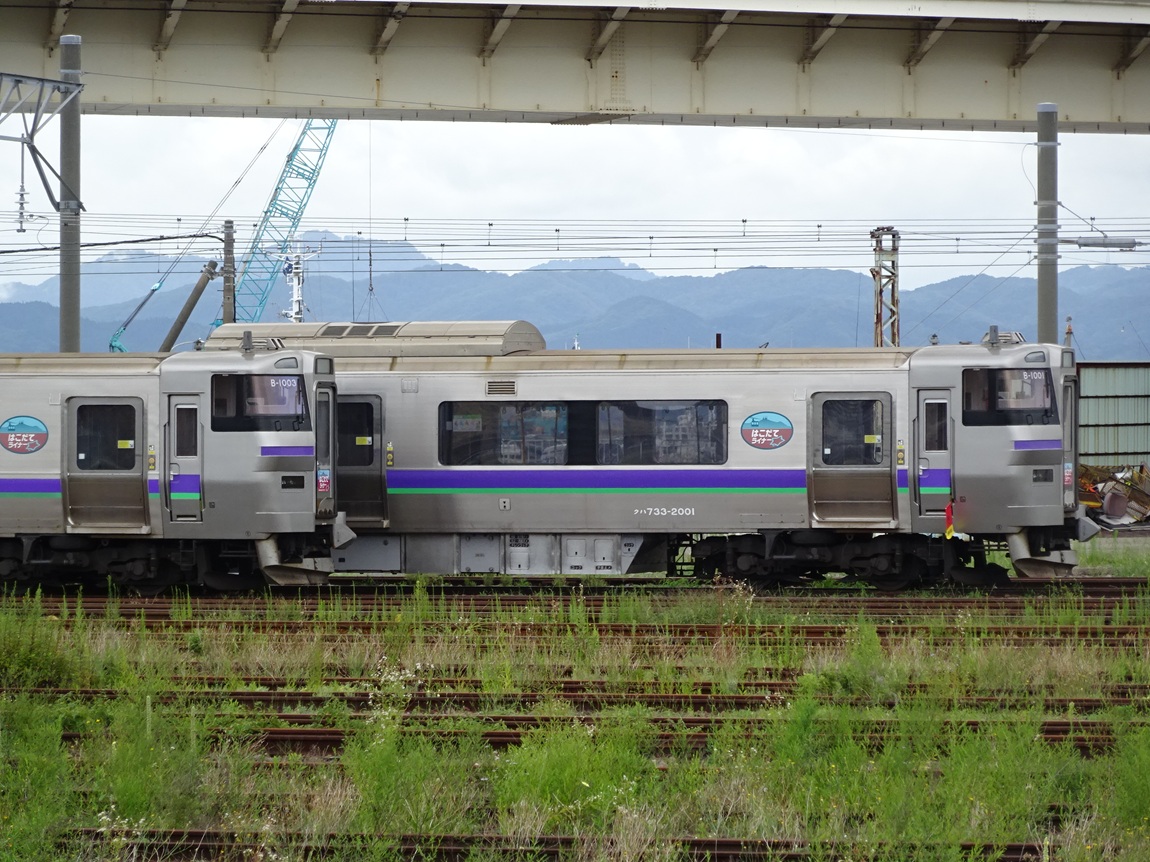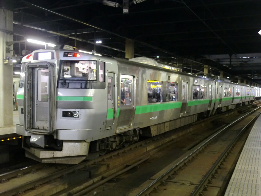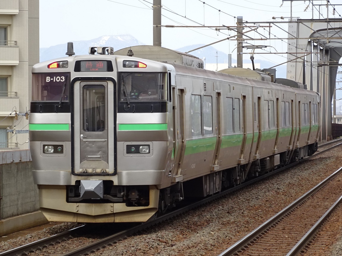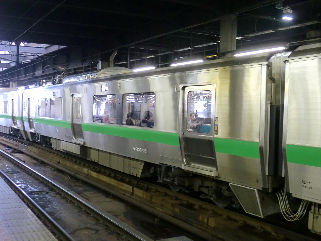 B-101編成 札幌発車(youtube) 733系は、札沼線の電化、711系の老朽化による置換えを目的に登場した車両で、基本的に731系のスタイルを踏襲しつつも、かなり幅広の車体になりました。側面のコルゲートはなくなったもののステンレス車で、車体の帯は黄緑一色に変更となっています。2014年9月に北海道を訪問した際、もはや札幌の主役の座に上り詰めていると言っても過言ではない程頻繁に見かけました。今後も増備が続くようです。 |