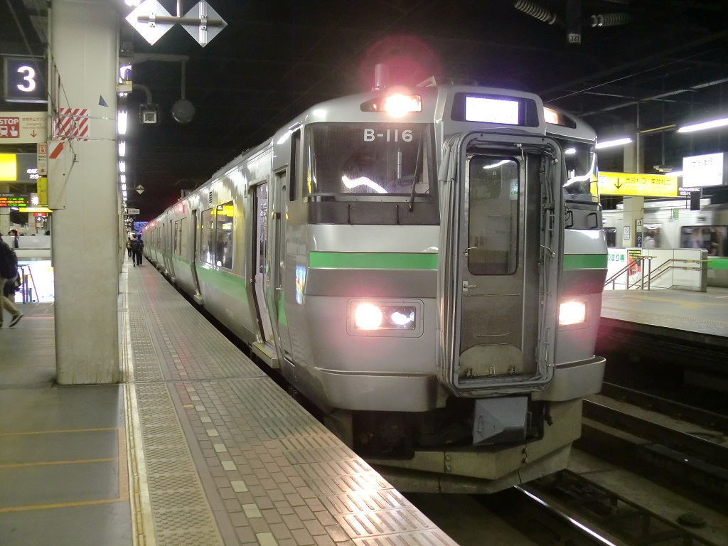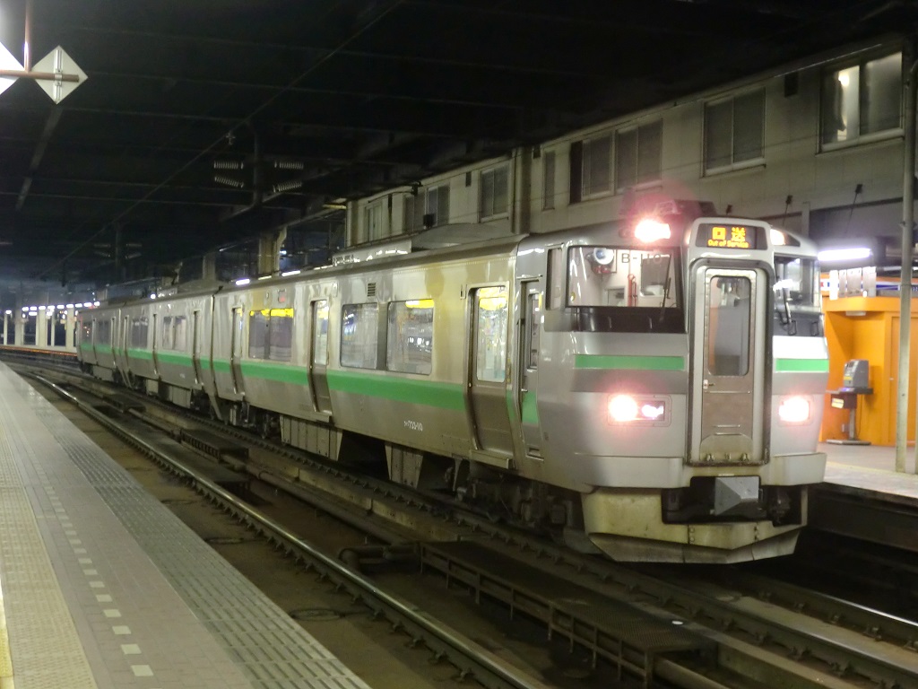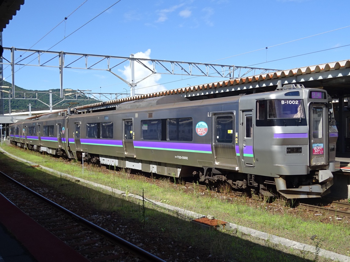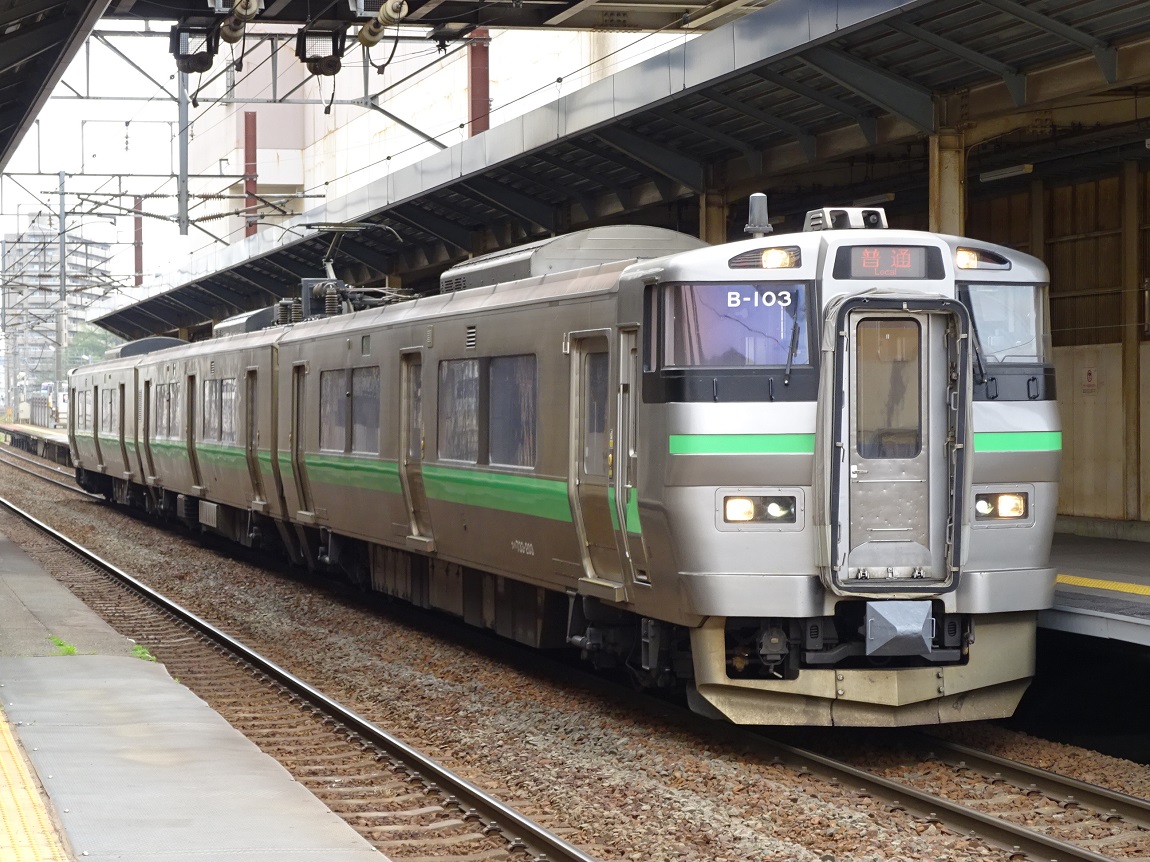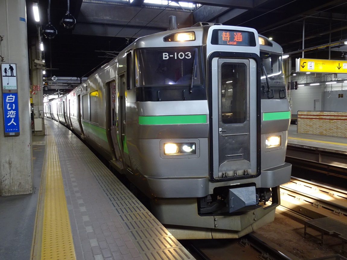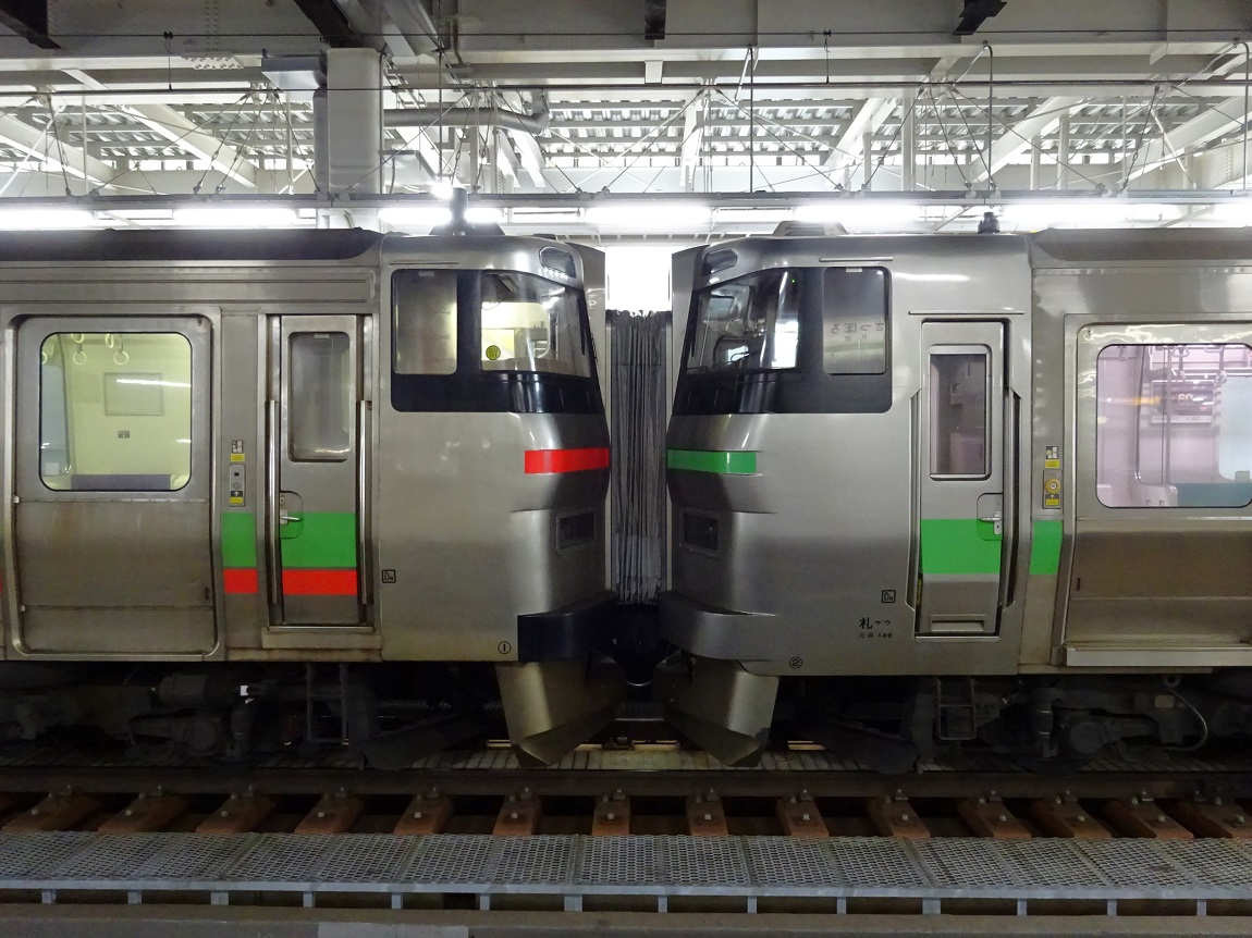 B-101編成 札幌発車(youtube) 733系は、札沼線の電化、711系の老朽化による置換えを目的に登場した車両で、基本的に731系のスタイルを踏襲しつつも、かなり幅広の車体になりました。側面のコルゲートはなくなったもののステンレス車で、車体の帯は黄緑一色に変更となっています。2014年9月に北海道を訪問した際、もはや札幌の主役の座に上り詰めていると言っても過言ではない程頻繁に見かけました。今後も増備が続くようです。 |