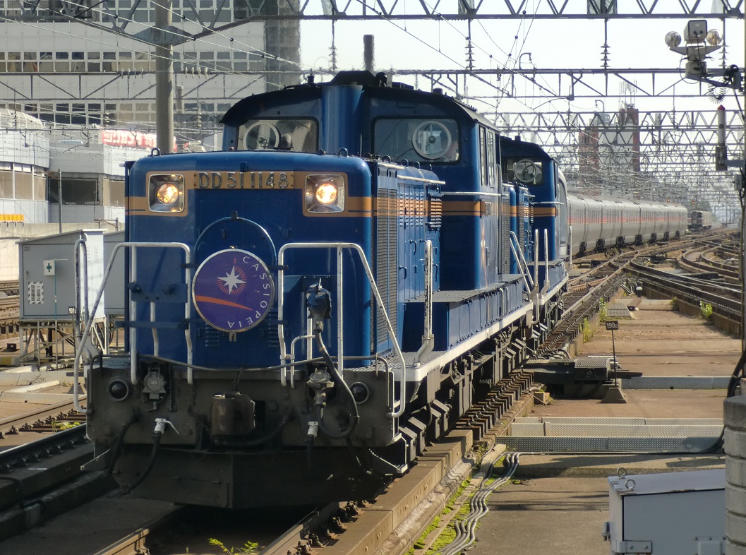 上写真は札幌にて(1148号機牽引の「カシオペア」)。