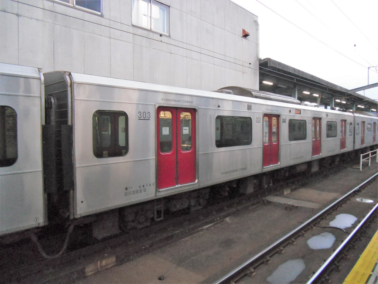 | 303系(K02編成)博多発車(youtube) 筑肥線の増備目的で導入された303系は6連3本のみの存在。103系のように分割運用には対応していません。余談ながら、自分はこのK02編成の撮影をもって303系の全編成撮影を完了しました。 |