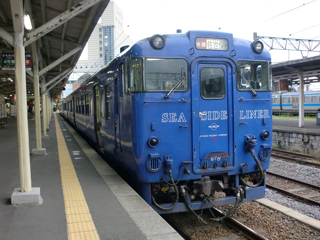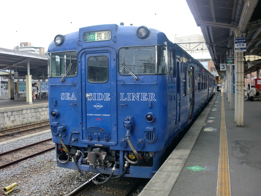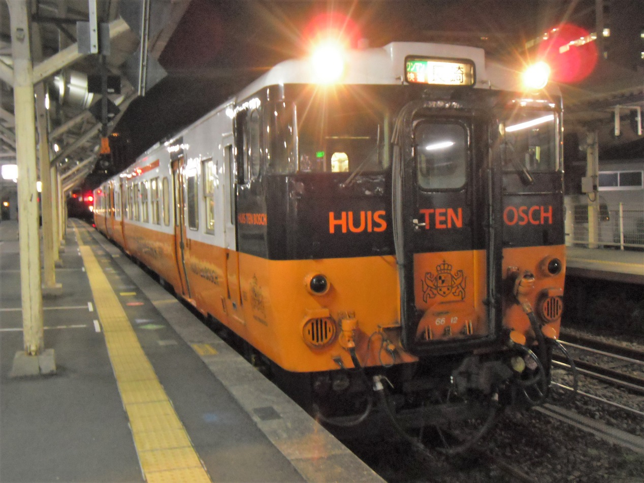 | キハ66系(第9編成)佐世保発車(youtube) キハ66-9を先頭とした編成。シーサイドライナー色、国鉄色、ハウステンボス色の3通りが存在しますが、どの列車も普通列車シーサイドライナー双方に使用されるようです。これは長与経由の長崎行き普通列車として発車してゆきました。 目立たない存在ですがこのあたりでしか見られないキハ66。しっかり記録できてよかった。 |