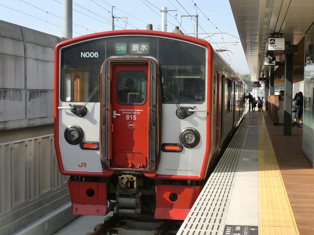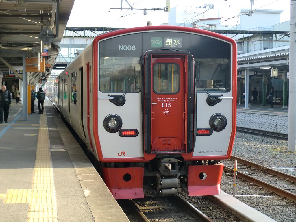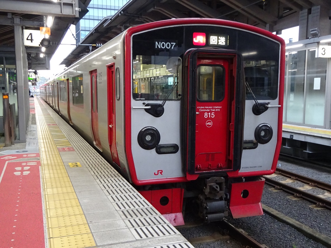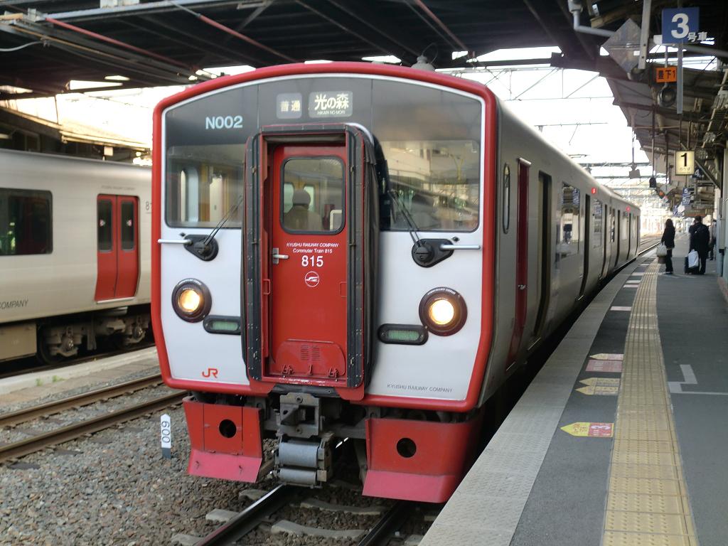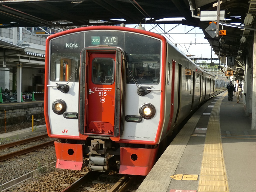 | 815系N020編成大分発車(youtube) 815系は熊本および大分地区のワンマン列車の主力として活躍する車両で、現在JR九州で増備が続いている817系の母体ともいえる存在です。シンプルなように見えてこだわりのあるデザインが特徴。実物をまじまじと観察する機会があったら、前面のライトにさりげなく書かれている文字にご注目。 |