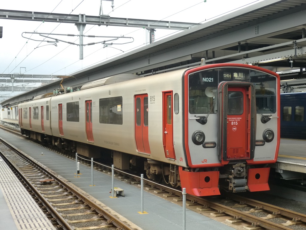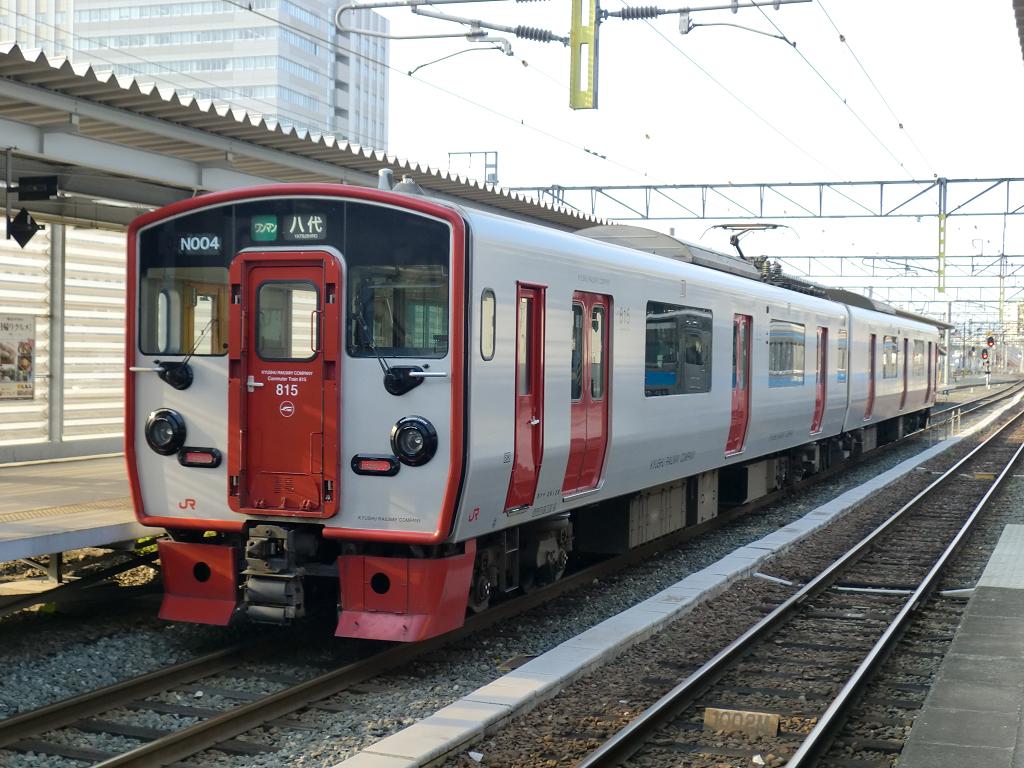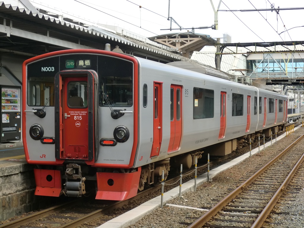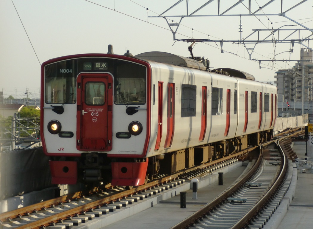 1999年、豊肥本線の熊本〜肥後大津間が電化したことおよび熊本地区の鹿児島本線と大分地区の日豊本線がワンマン運転を開始したことに伴い登場した車両で、熊本地区の主力車両となっています。デザインしたのは相変わらず水戸岡鋭治。811・813・817系との併結運転が可能になっており、走行装置としては後に登場した817系と変わりません。尚、車体は日立のA-Trainとなりました。シンプルなデザインのように見えて、前面のライトに小さなロゴがたくさん書かれている等、水戸岡デザインならではの細かなこだわりがあるようです。 上写真はN002編成、西熊本にて。 |