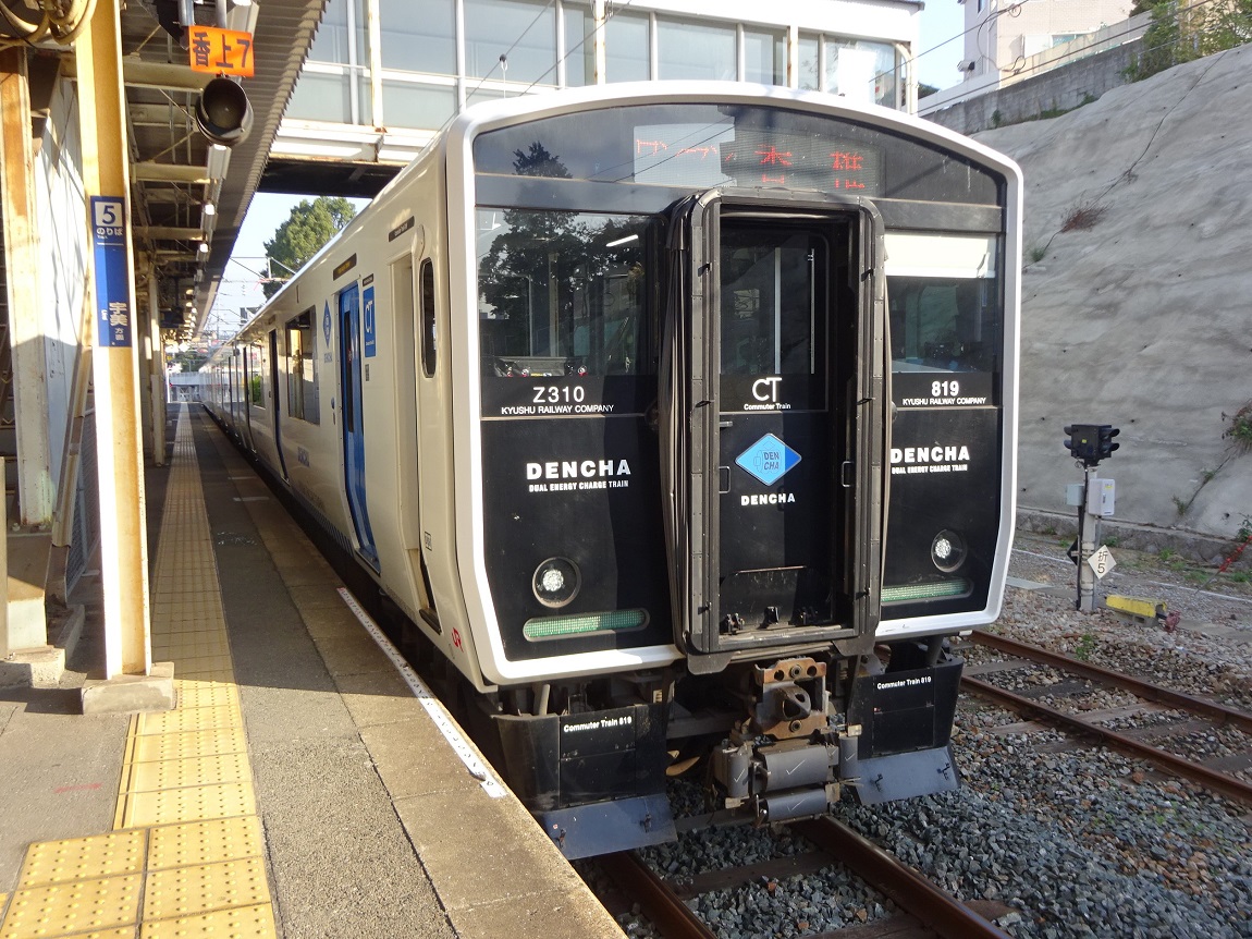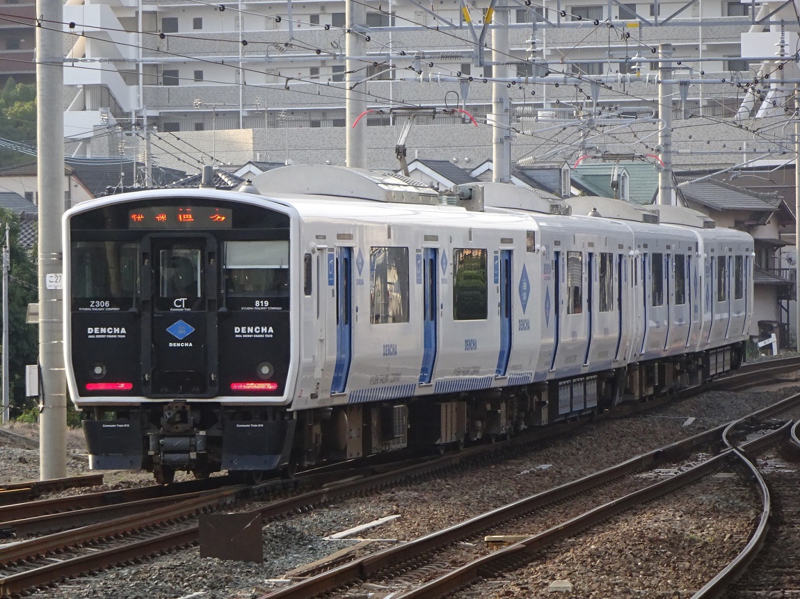 Z311編成を改造したZ5311編成。この編成は「5300番台」に区分されていますが、この車両は改造によって自動運転が出来る編成となりました。乗務員が乗務した上で当面は実証実験を行う形になるようです。 撮影地:香椎 |