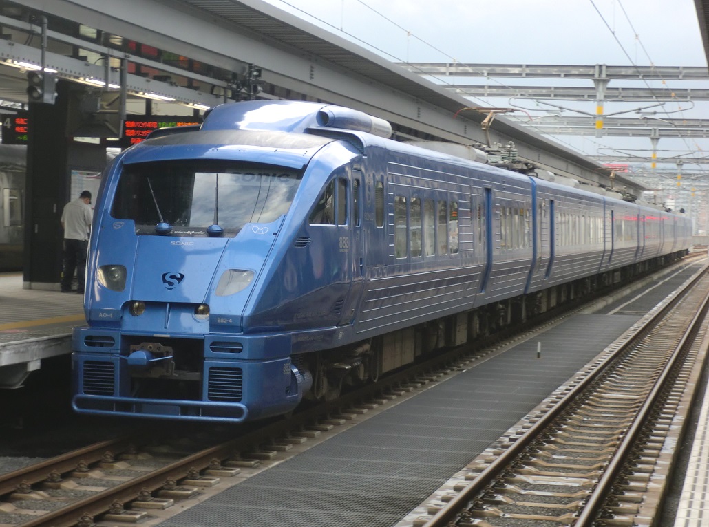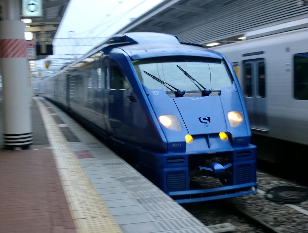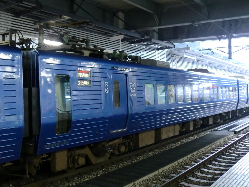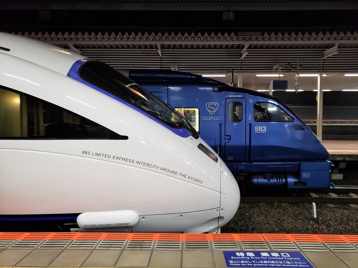 883系AO1編成?博多発車 JR九州の看板特急といっても過言ではない「ソニック」。高頻度で博多駅2番線から出発していく様子は何度見ても飽きません。883系の運用が多いものの、885系の運用も割と存在しています。今回九州を訪れた際、帰りに博多〜東京で新幹線ロングランをするつもりが、あまりにも魅力的だったので小倉まではソニックに乗ってしまいました。 |