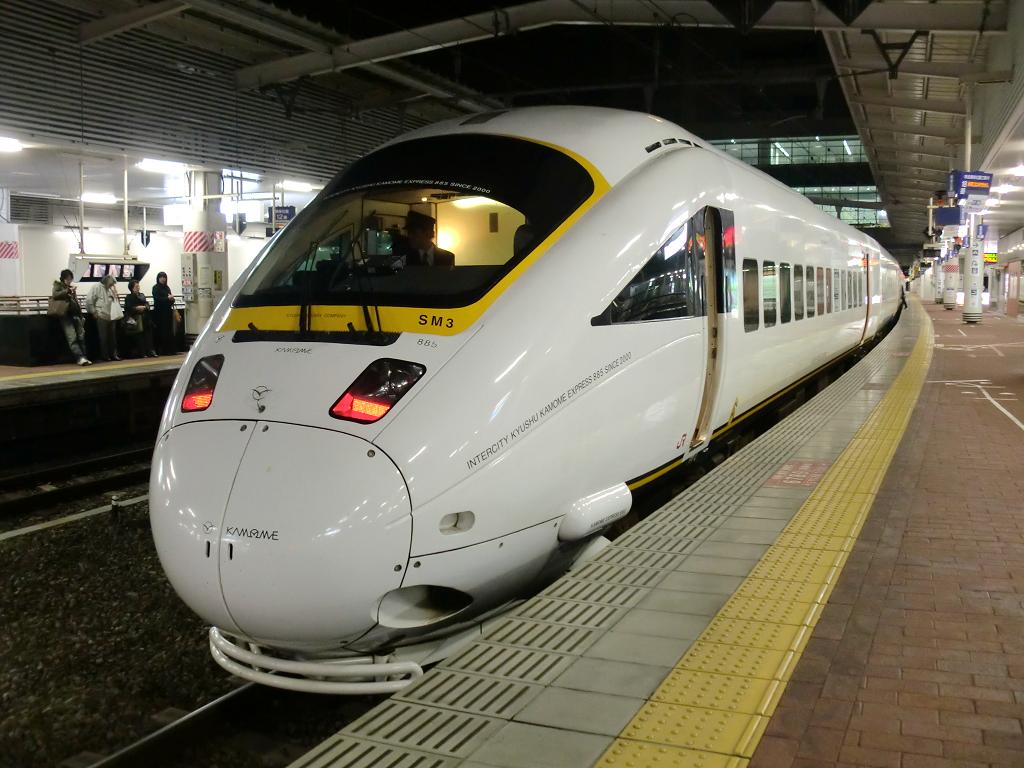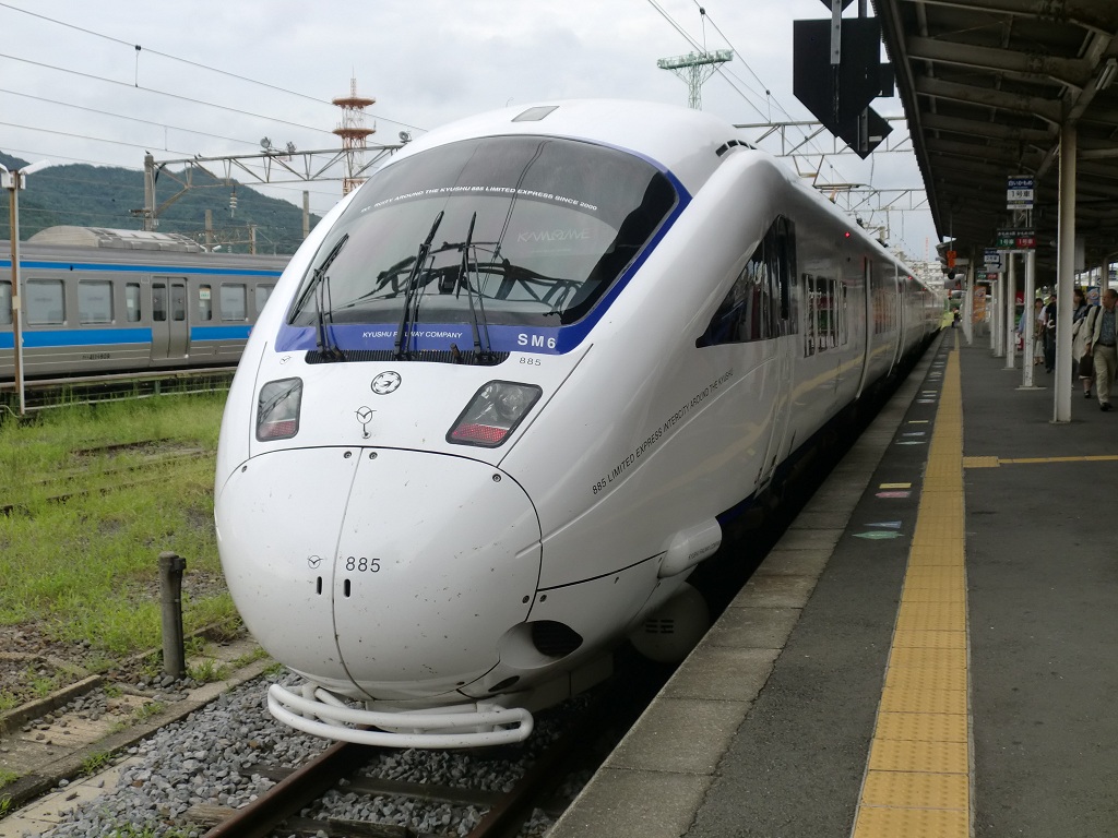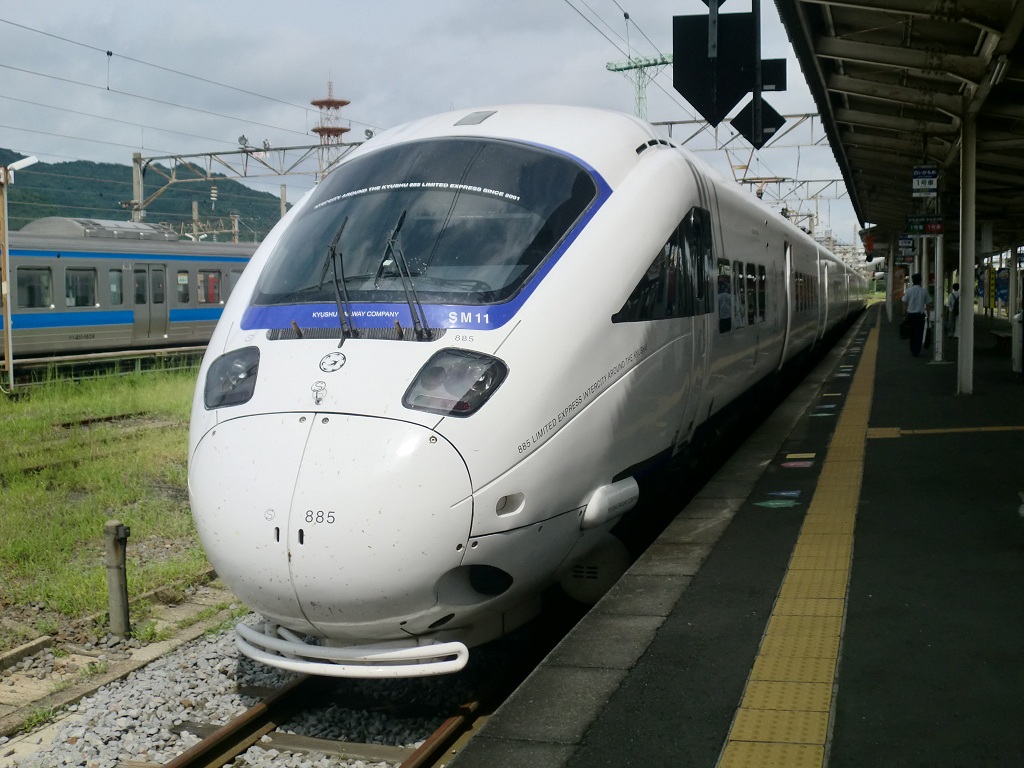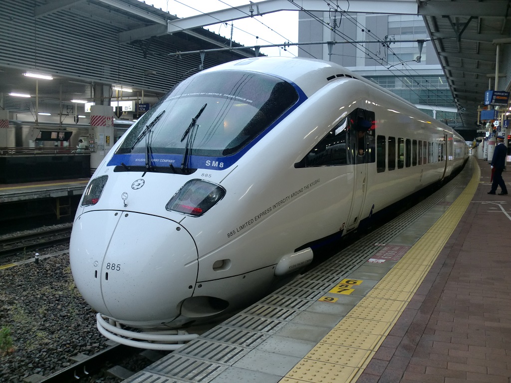 885系SM3編成博多発車 もともと「かもめ」用として登場、後に「ソニック」用の増備車が登場。で、現在はもともとかもめとして登場した車両をソニックにも使うために塗装変更が進行中...そんなわけで、もともと登場していた黄色い885系は規模が縮小傾向。前博多に来た時から1年と経っていなかったのに全然来なくて焦ったのでした。 |