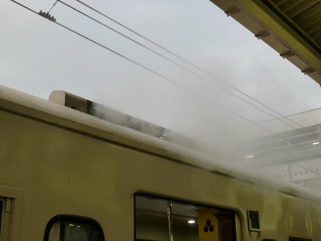 | 特急「指宿のたまて箱」入口の煙(youtube) まるで玉手箱を開けた時の煙のような演出。こういう遊び心がいいんですよね。 |