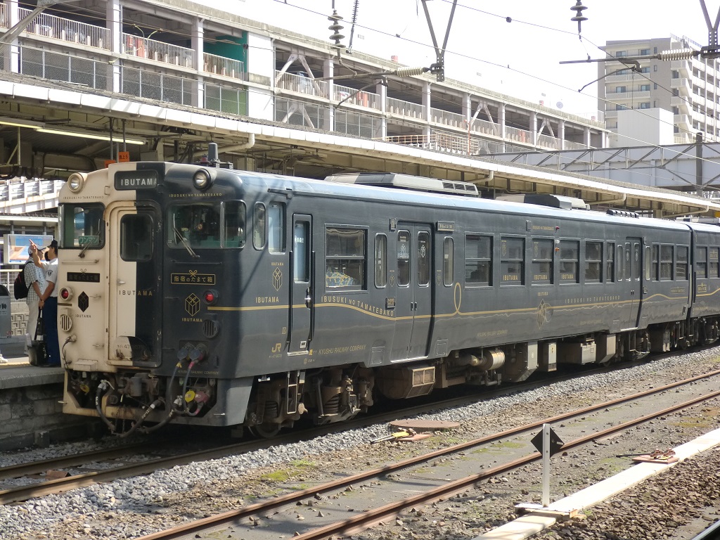 | 特急「指宿のたまて箱」鹿児島中央発車(youtube) JR九州の指宿方面への観光特急「指宿のたまて箱」。遊び心満載で見ているだけで楽しくなるようなこの車両、列車の左右で塗り分けが異なっており、見る向きによって受ける印象が変わります。こちらは白い色に塗り分けられている側から出発を録ったもの。 |