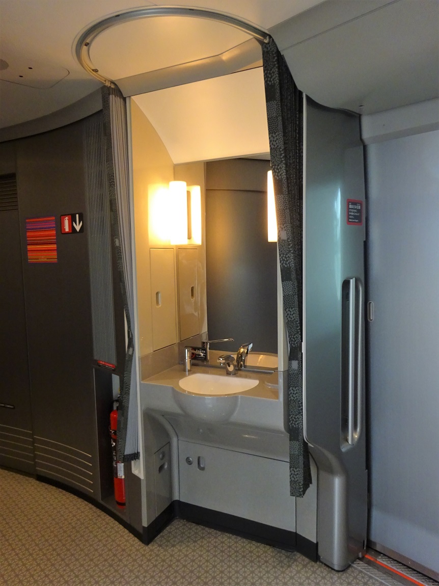 | 車内 (座席4) | 座席4 | 車内案内表示 | 荷物置き場 | 洗面所 | 車内照明 |