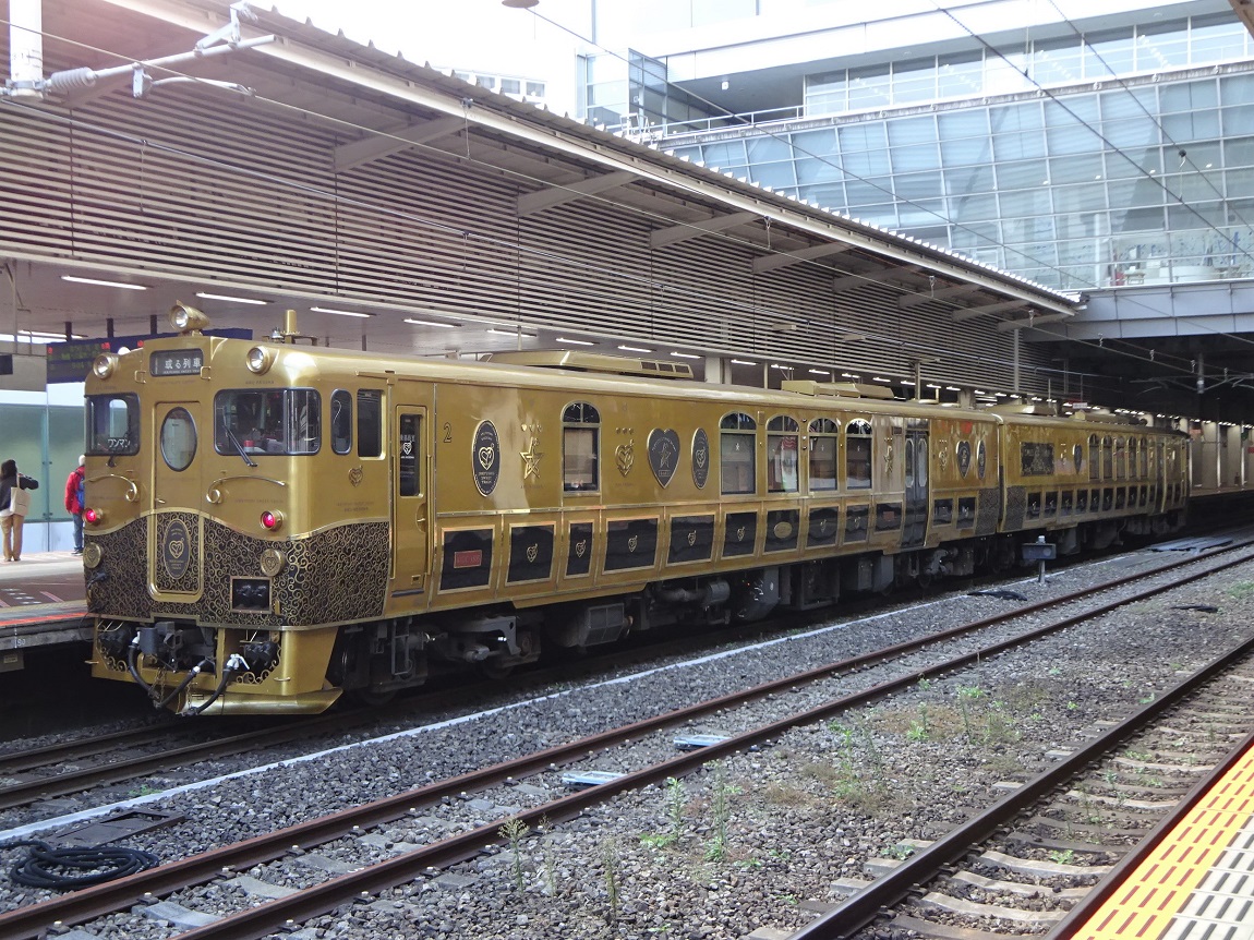 | 博多発車 その1(youtube) 豪華レストラン列車として登場したキハ47「或る列車」。いかにも豪勢な見た目の通り、乗車するにはそれなりの支払いが必要になります。キハ47にここまでする徹底ぶりには本当に驚かされます。乗ってみたいけれど高嶺の花、というのが本音です。 |