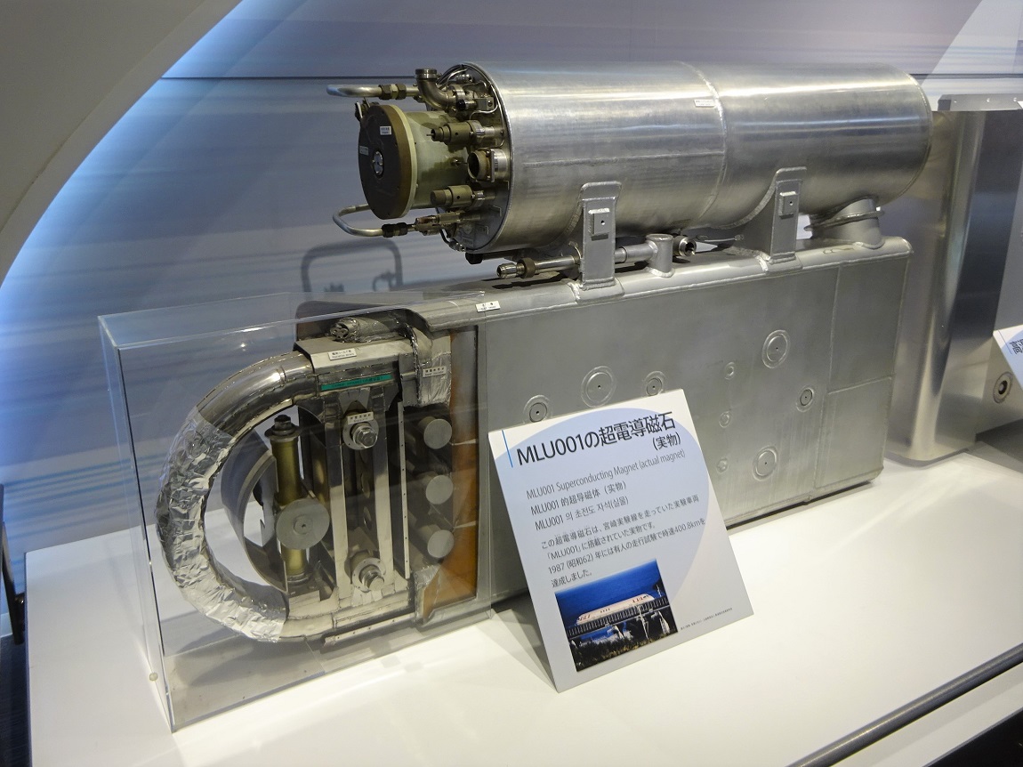 1980年から宮崎実験線用のU字型軌道用として導入された車両で、強い磁力を発生させる超電導電磁石を搭載し、浮上と同時に同一コイルを使う事が可能になった為車両の小型化に成功した…との事。車体のカラーリングは白に赤のストライプだった時期と緑のストライプだった時期があります。1989年に運用を修了したものの、後継のMLU002が事故で失われてしまったことから1992年に運用に復帰しています。
