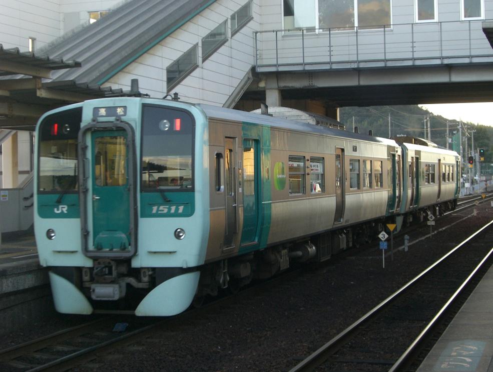 | ・1500形走行音 【牟岐線】牟岐→鯖瀬(4分40秒:1.48MB) 毎度ながらのwikipedia引用ですが、コマツ製の直列6気筒ディーゼル機関 SA6D140HE-2 (450PS) を1基搭載しているそうです。従来と比べて環境にも優しいとのことですが、音は特別他の車両と変わらない気がします。 |