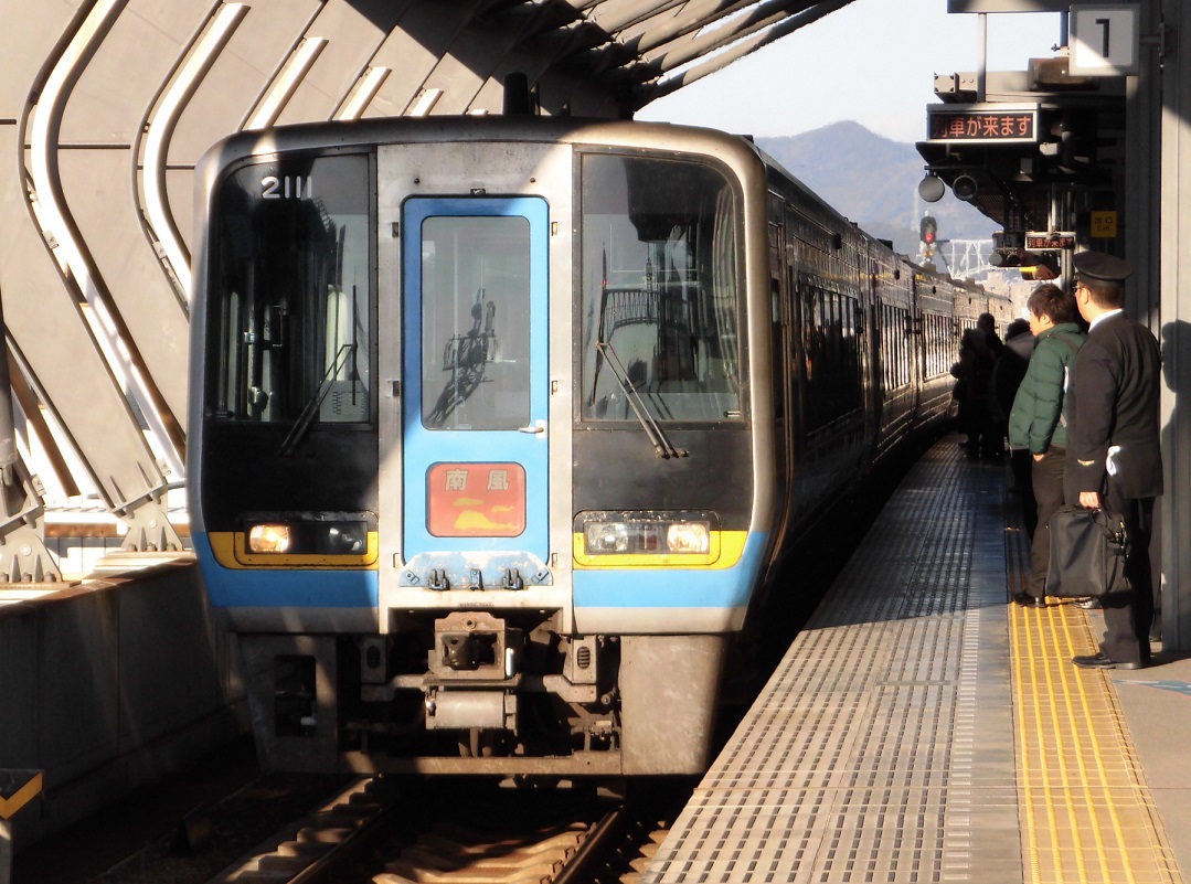 | ・2000系車内放送 【宇和海3号】次は内子(16秒:91.7KB) 【しまんと1号】次は旭(31秒:172KB) 2000系をはじめとする四国の特急ではチャイムのほかに簡単な自動放送が流れます。この放送が何だか私鉄のワンマン列車のような声なのですが、それもご愛敬。なお、車内チャイムは主要駅を発車した時にしか流れない…筈なのですが、高知駅を発車した際にも流れなかったので始終着時のみなのかもしれません。 |